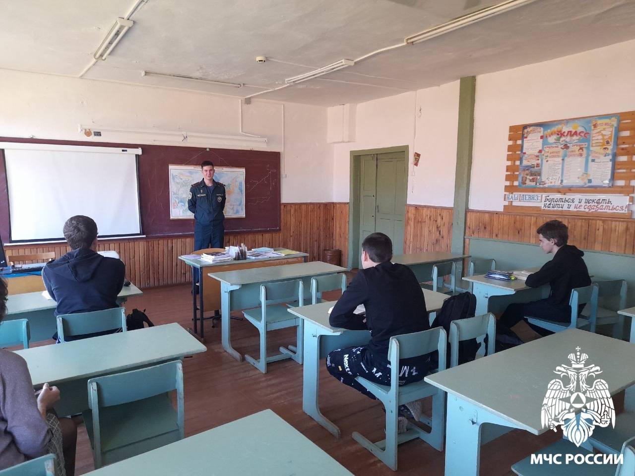 Инспекторы пожарного надзора Корткеросского района встретились со старшеклассниками поселка Усть-Лэкчим и рассказали им о возможности поступления на обучение в ВУЗы МЧС России.