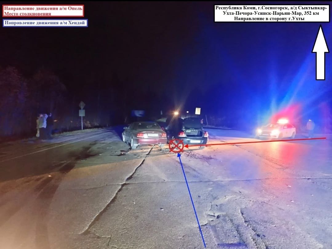 11.11.2025 около 17:36 водитель, управляя автомашиной "Опель", двигаясь по автодороге "Сыктывкар – Ухта – Печора – Усинск – Нарьян-Мар", при выезде на нерегулируемый перекресток
