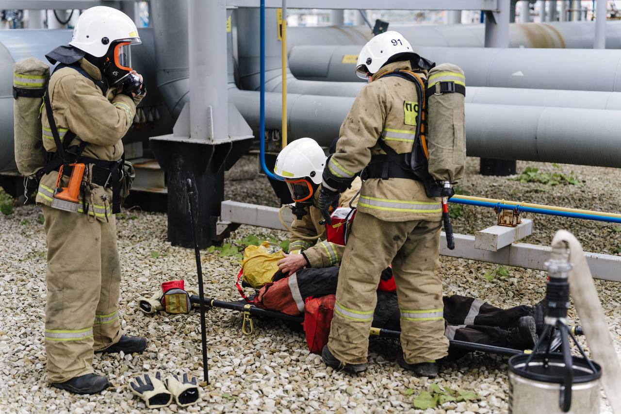 По тактическому замыслу учений в помещении компрессорной станции возник пожар. Одной из главных задач учений было оперативное решение вопросов тактики тушения пожара и проведения первоочередных аварийно-спасательных работ с привлечением большого количества сил и средств, применения различных способов подачи огнетушащих веществ.