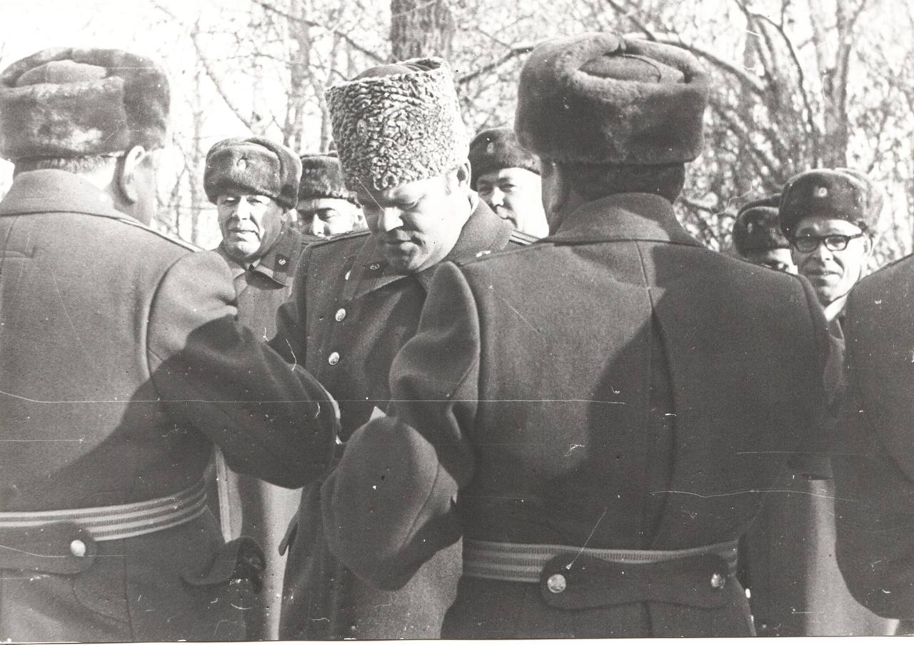 На фотографии 1976 года начальник Управления пожарной охраны МВД Коми АССР полковник внутренней службы Сергей Иванович МАРТЫНОВ проводит строевой смотр личного состава Сыктывкарского пожарного гарнизона УПО МВД Коми АССР.