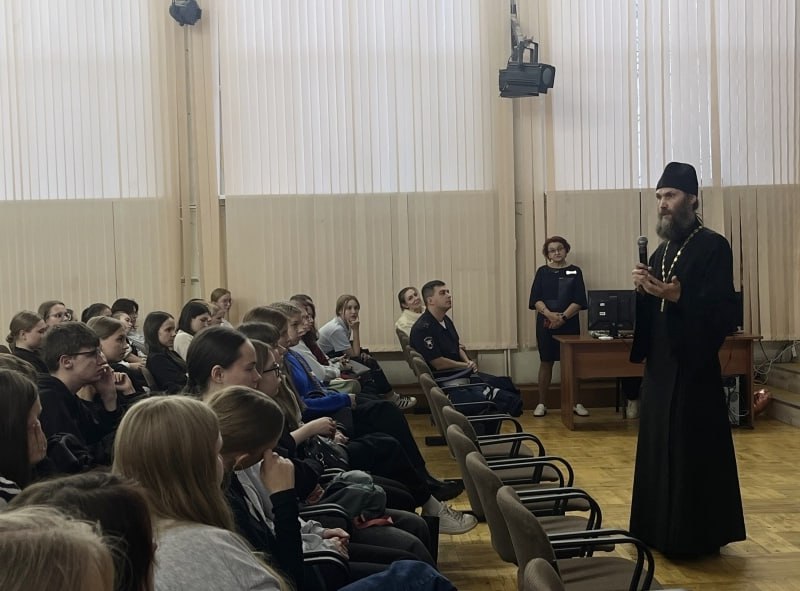 Максим Стыров сделал акцент на нравственной стороне вопроса, обратившись к студентам с духовной беседой. Он говорил о глубокой личной ответственности каждого, значимости слова и о том, к каким непоправимым последствиям могут привести необдуманные поступки, в том числе на дороге.