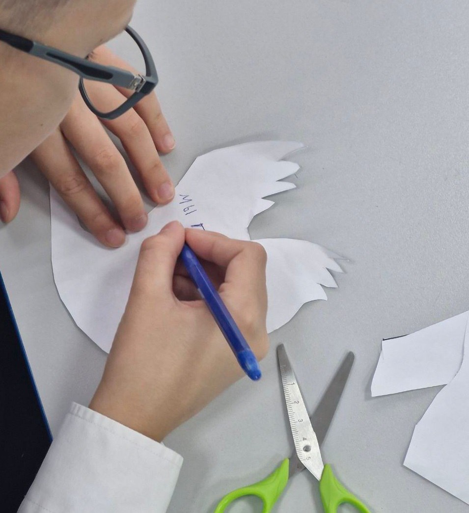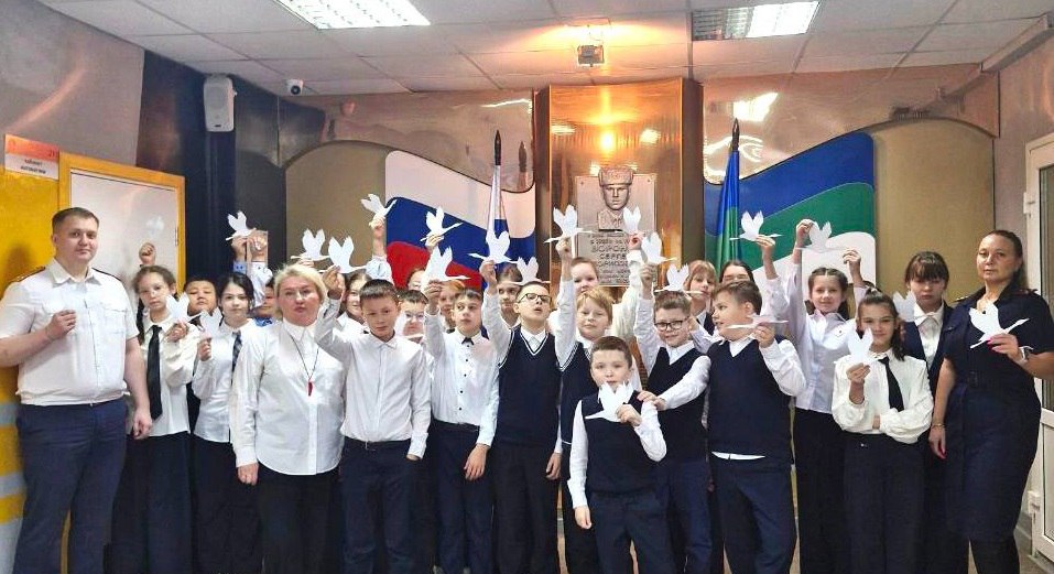 В рамках классного часа «Разговоры о важном» сотрудники следственного отдела по городу Усинску СУ СК России по Республике Коми рассказали учащимся пятого класса лицея о памятниках павшим воинам, установленным в разных городах нашей страны, и смастерили вместе с ребятами из бумаги белых журавлей.