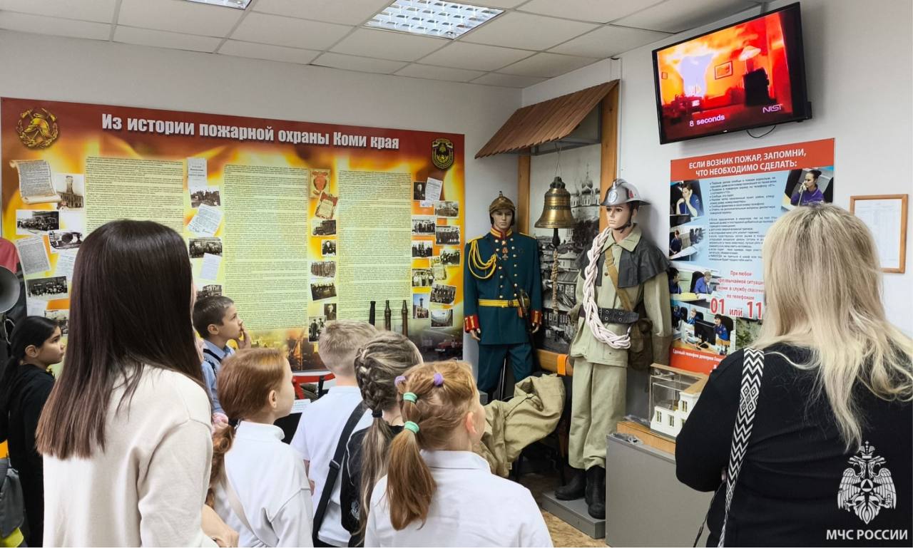 Вместо учебников - настоящий пожарный колокол, вместо урока - история героев-огнеборцев. Учащиеся 3 "Д" класса из Сыктывкара провели день в гостях Пожарно-технической выставки МЧС Коми.