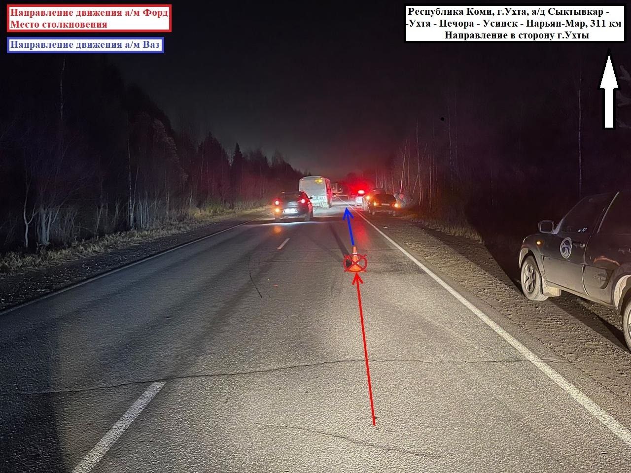 24.10.2025 г. около 17:15 водитель, управляя автомашиной "Форд", двигаясь по автодороге "Сыктывкар – Ухта – Печора – Усинск - Нарьян-Мар", не выдержал безопасную дистанцию до движущегося впереди в попутном направлении транспортного средства, в результате чего совершил столкновение с автомашиной "ВАЗ".