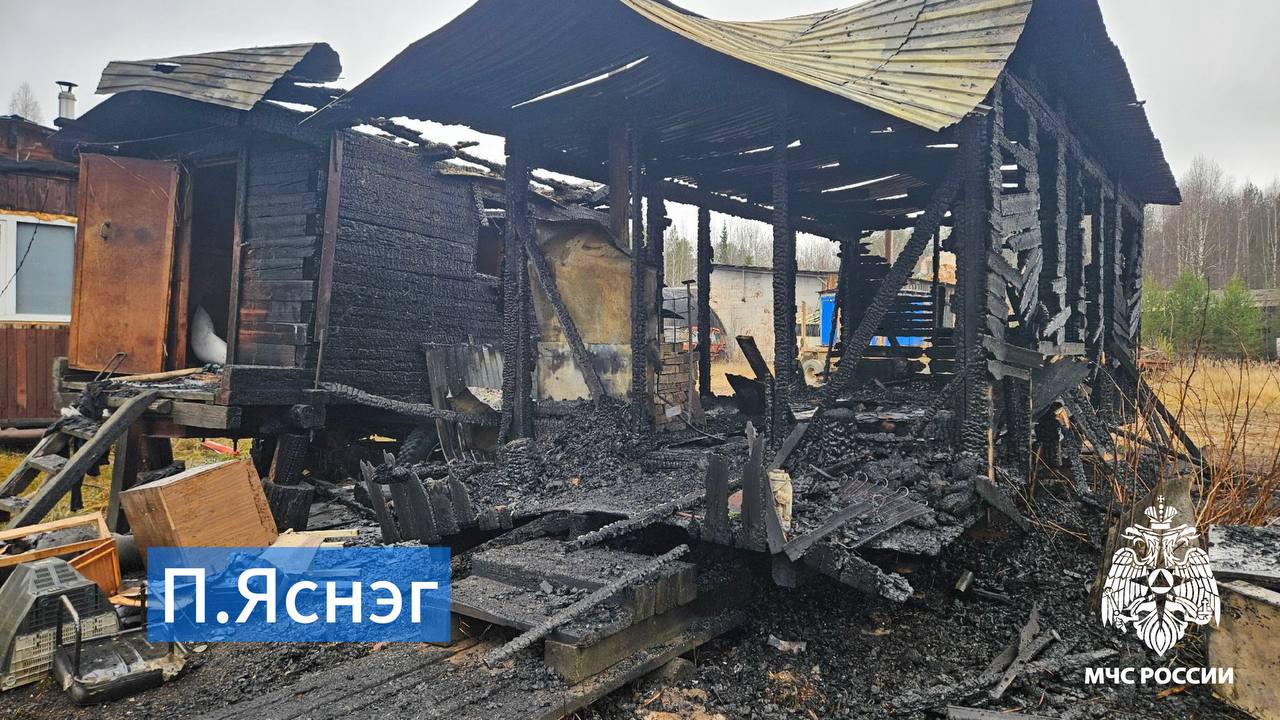 п.Яснег, возгорание в деревянных балоках, расположенных в по улице Промышленная, ликвидировано на общей площади 30 квадратных метров. Пострадавших нет.