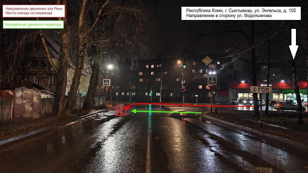 06.11.2025 около 18:30 водитель, управляя автомашиной «Рено», двигаясь по ул. Печорская, при совершении маневра поворота налево на разрешающий сигнал светофора, совершил наезд на пешехода.
