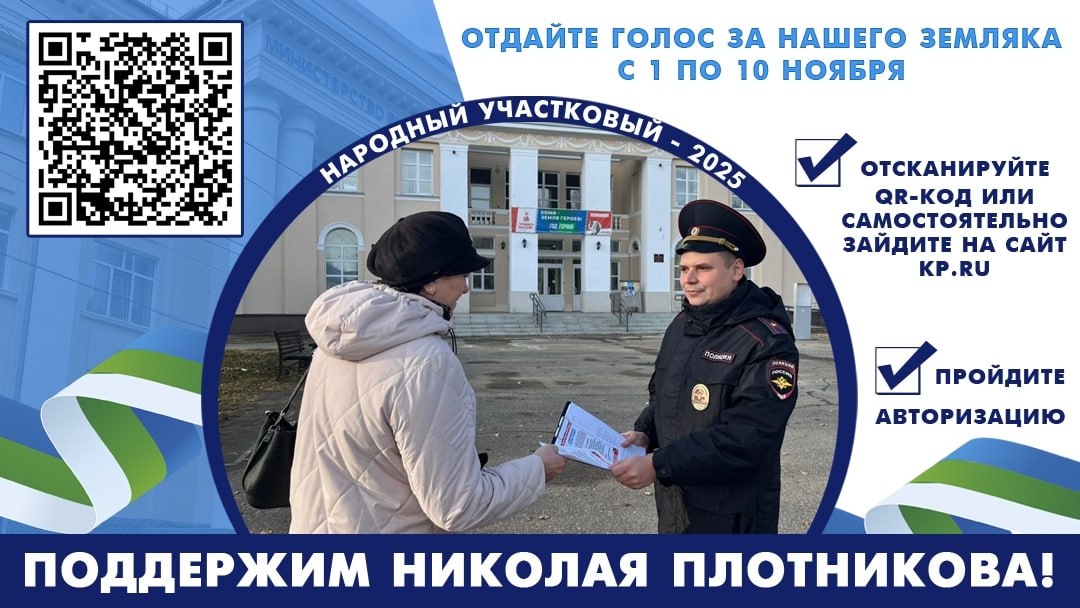 МВД по Республике Коми напоминает, что до 10 ноября проходит онлайн-голосование в рамках финального этапа Всероссийского конкурса «Народный участковый - 2025».