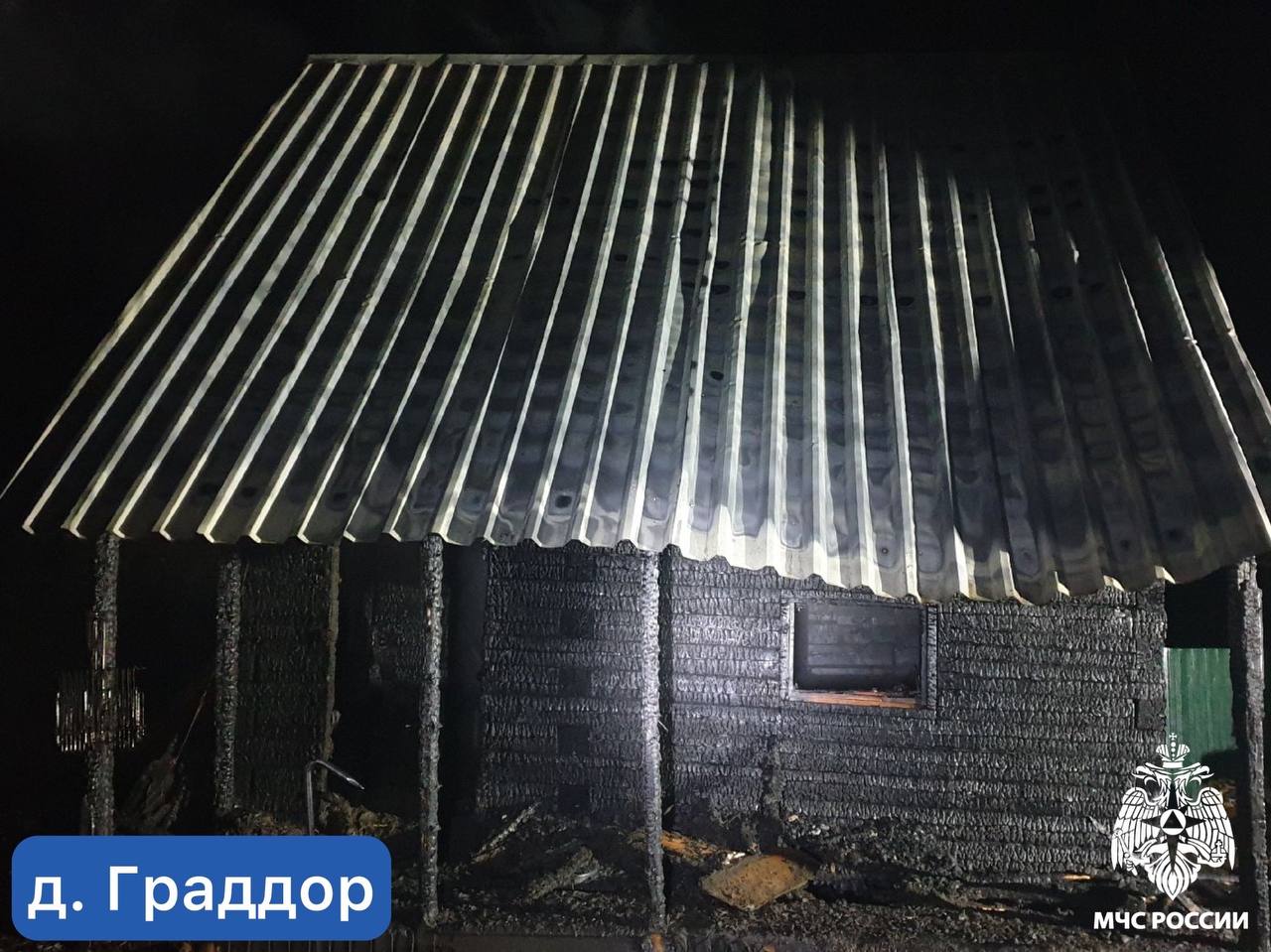 д. Граддор, пожар в бане ликвидирован на площади 20 квадратных метров. Предварительная причина пожара - нарушение требований пожарной безопасности при эксплуатации отопительной печи.
