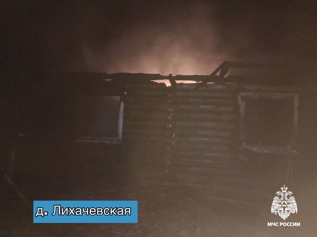 д. Лихачевская, возгорание нежилого дома по улице Центральная ликвидировано на площади 64 квадратных метра. Предварительная причина пожара – неосторожность при курении.