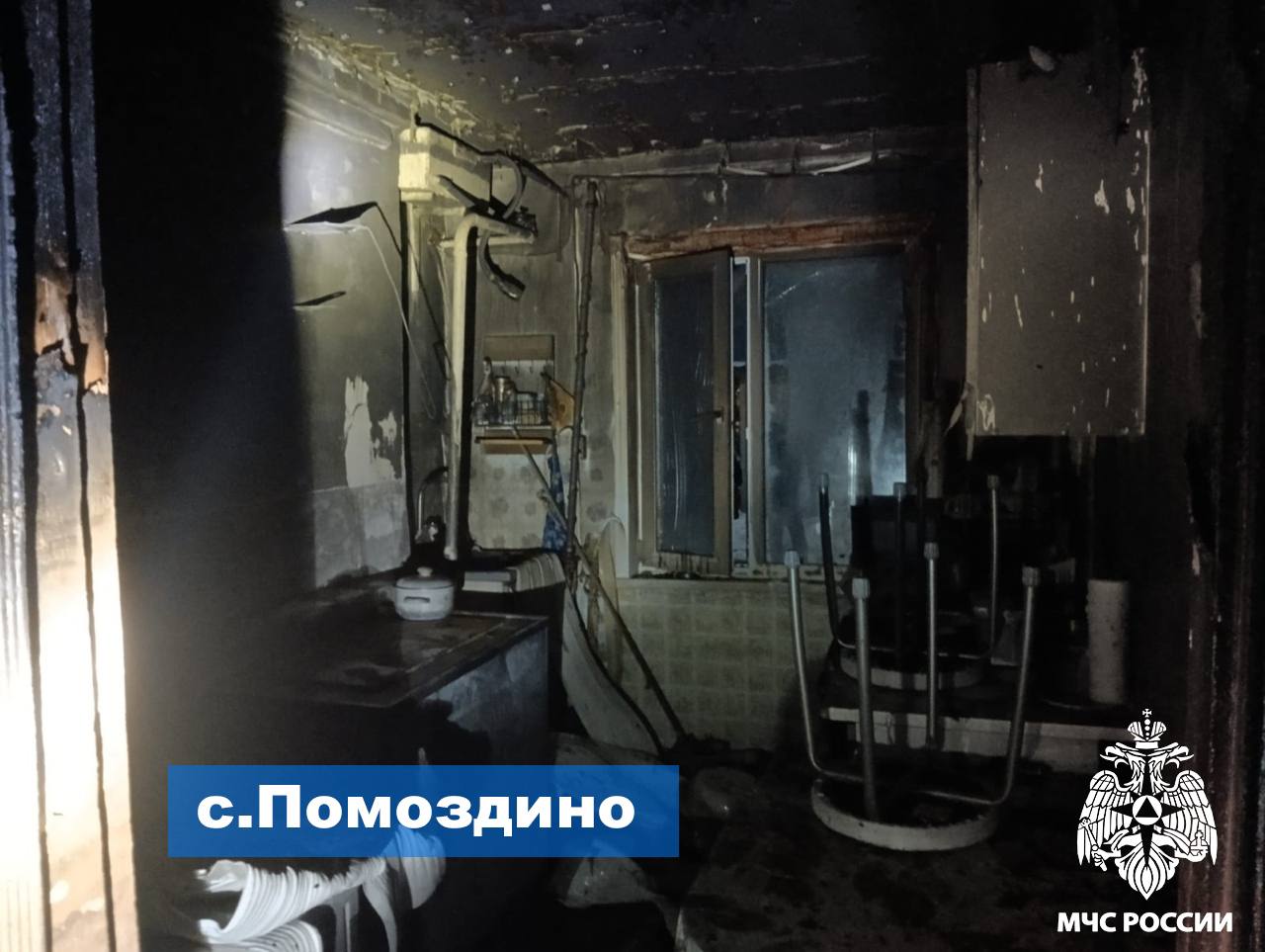 с. Помоздино, пожар в квартире жилого дома по улице Гаражная ликвидирован на общей площади 20 квадратных метров. Пожарными спасены 7 человек, еще 25 жильцов дома эвакуированы. На пожаре обнаружен погибший 50-летний мужчина, еще один мужчина получил травмы.