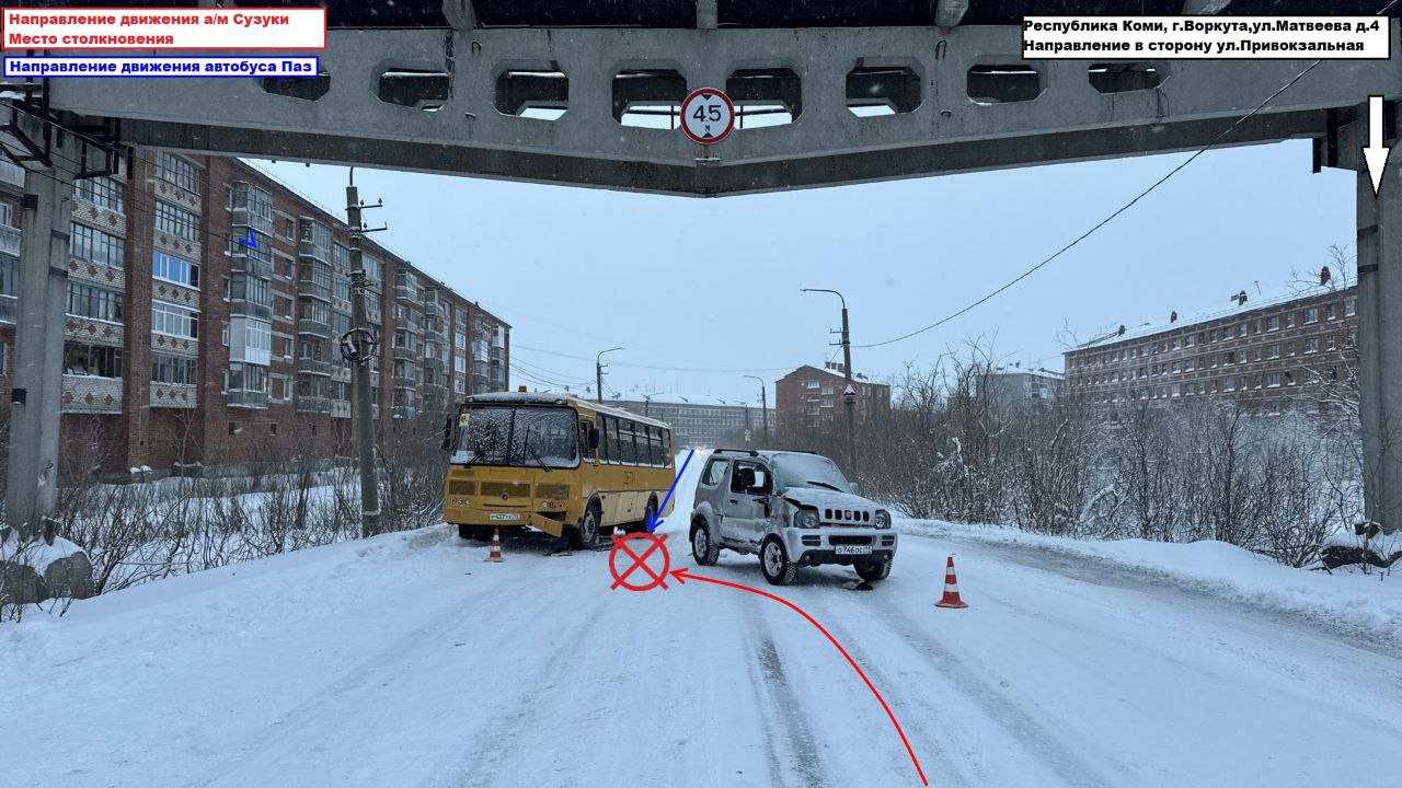 24.11.2025 около 07:55 водитель, управляя автомашиной «Судзуки», двигаясь по ул. Матвеева, не справился с рулевым управлением, выехал на сторону дороги, предназначенную для встречного движения, в результате чего совершил столкновение с автобусом «ПАЗ».