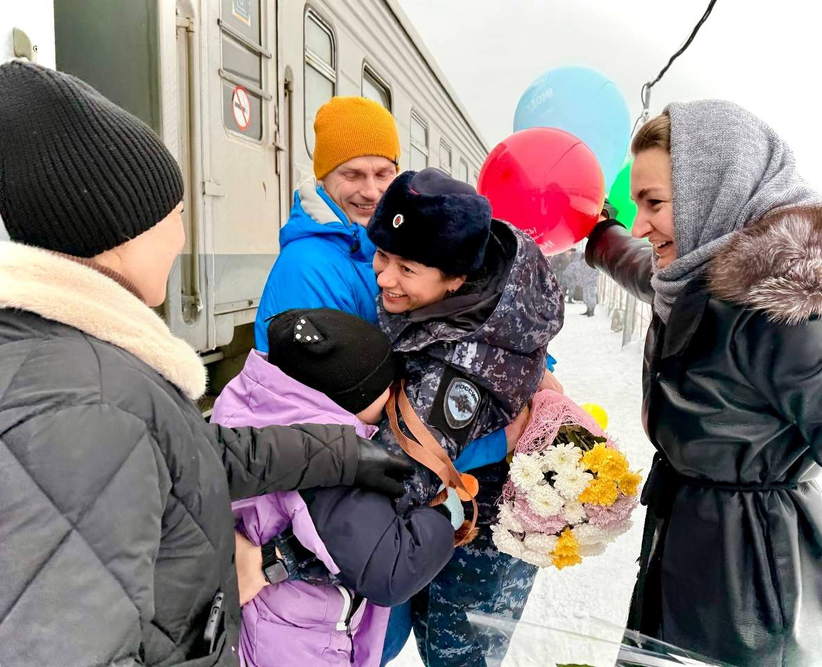 На перроне железнодорожной станции г. Микунь Усть-Вымского района прибывших правоохранителей встречал заместитель Министра внутренних дел по Республике Коми Сергей Раздёрин, а также родственники, друзья и коллеги