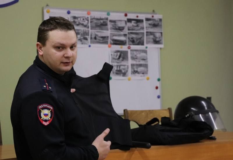 Особый интерес у ребят вызвала демонстрация спецсредств и обмундирования. Школьники смогли примерить бронежилеты и каски, чтобы на себе почувствовать, в каких условиях иногда приходится работать сотрудникам полиции