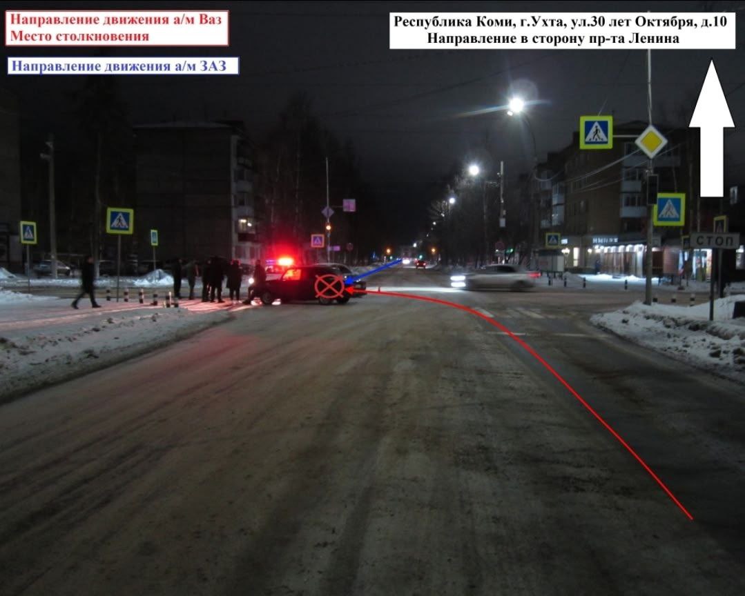 ул. 30 лет Октября и ул. Юбилейная на разрешающий (зеленый) сигнал светофора, осуществляя маневр поворота налево, не уступил дорогу, в результате чего совершил столкновение с автомашиной "ЗАЗ".