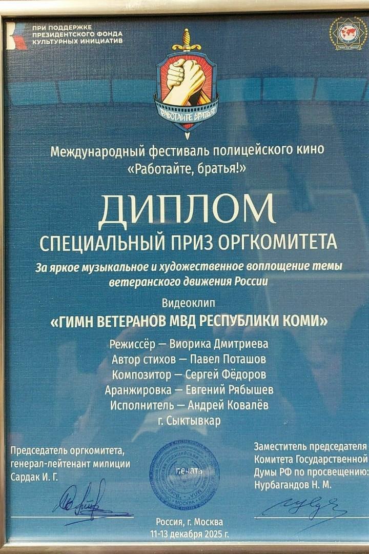 Гимн ветеранов МВД по Республике Коми получил специальный приз на Международном фестивале полицейского кино «Работайте, братья!»