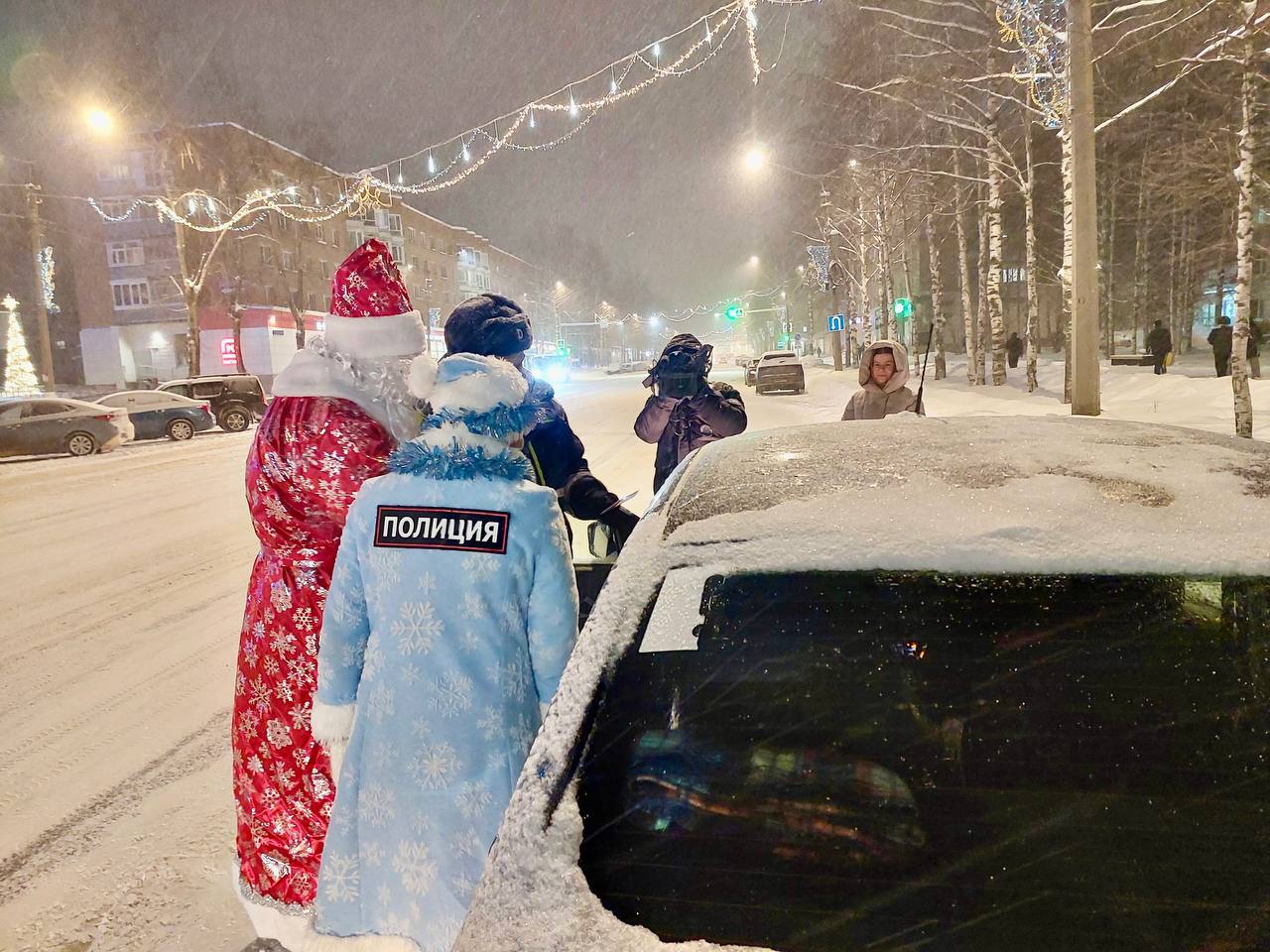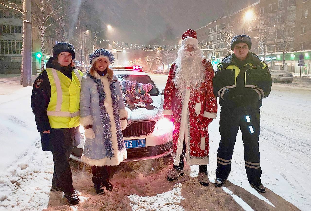 В преддверии Нового года сотрудники Госавтоинспекции Республики Коми поддержали всероссийскую социальную акцию «Полицейский Дед Мороз». На одной из центральных улиц Сыктывкара стражи порядка напомнили участникам дорожного движения о необходимости соблюдения ПДД и поздравили их с наступающими праздниками