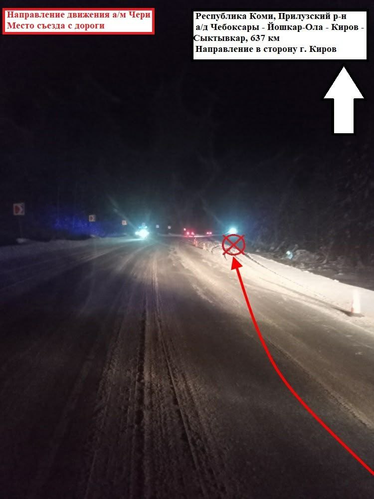 25.12.2025 около 15:50 водитель, управляя автомашиной "Чери", двигаясь по автодороге "Чебоксары - Йошкар-Ола - Киров - Сыктывкар", не справился с рулевым управлением, в результате чего совершил съезд с дороги в правый по ходу движения кювет с последующим опрокидыванием.