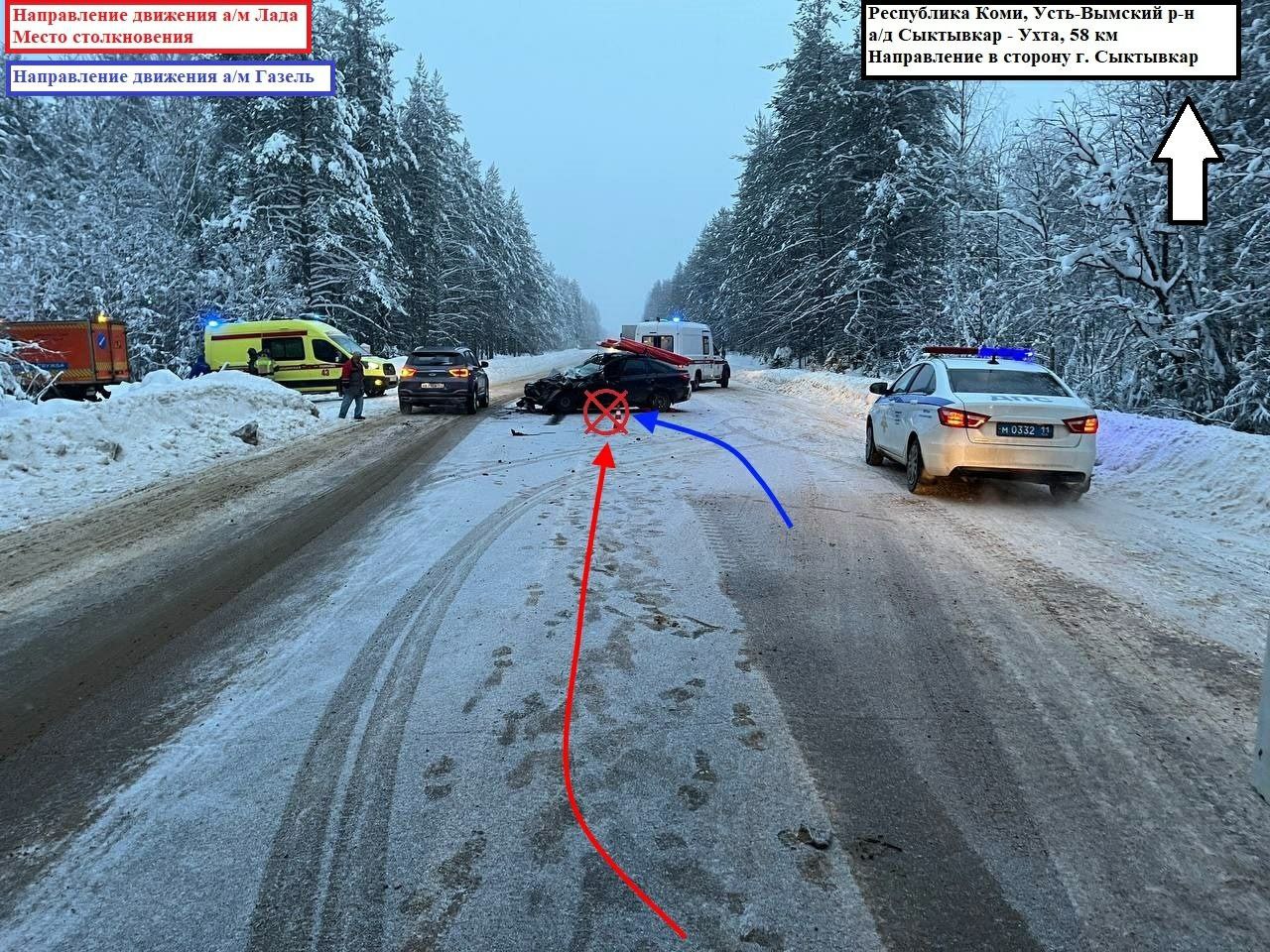 25.12.2025 около 13:15 водитель, управляя автомащиной "Лада", двигаясь по автодороге "Сыктывкар – Ухта", выполняя маневр обгона, выехал на сторону дороги, предназначенную для встречного движения, в результате чего совершил столкновение с автомашиной "Газель".