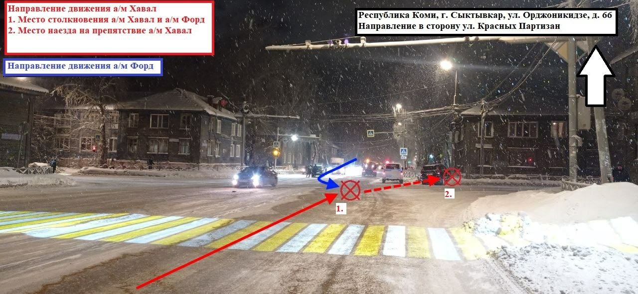 25.12.2025 около 18:55 водитель, управляя автомашиной "Рено", двигаясь от автодороги "Сыктывкар - Эжвинский район", выполняя маневр поворота налево на проспект Бумажников,