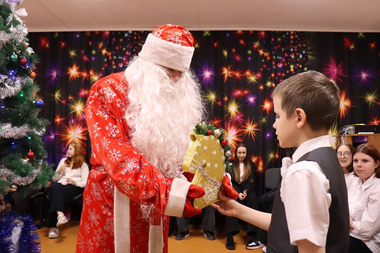 Мероприятие продолжилось совместным исполнением новогодних песен и хороводом. Дети показали свои творческие таланты в мини-концерте и подарили своим шефам сделанные своими руками поделки