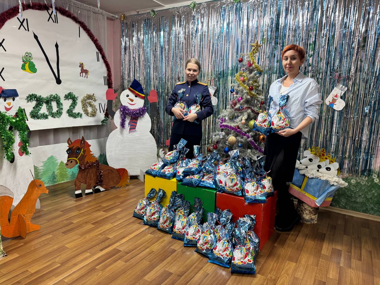 Офицеры приобрели и передали сладкие новогодние подарки для детей из семей, оказавшихся в трудной жизненной ситуации.