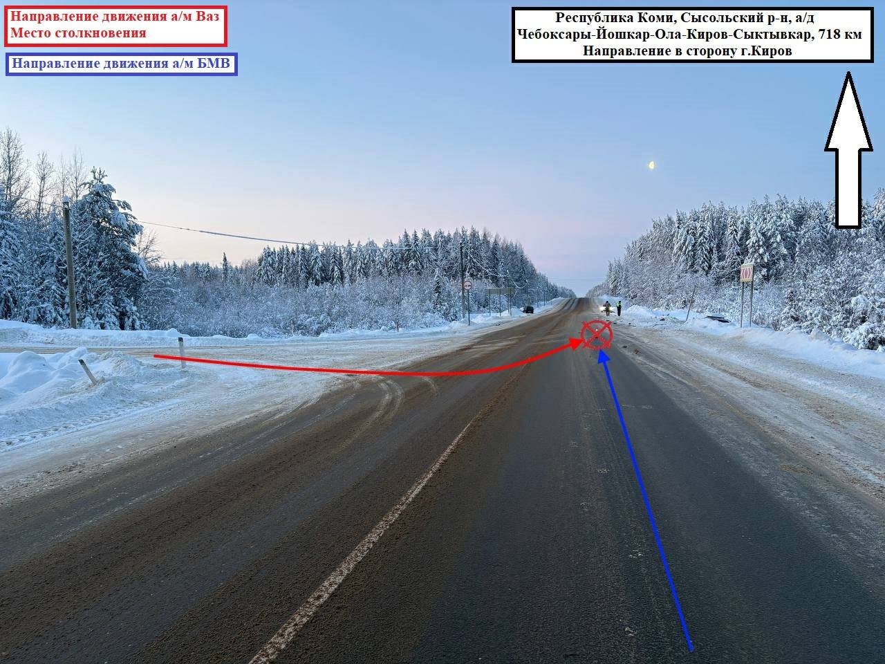 09.01.2026 около 07:08 водитель, управляя автомашиной "Ваз", двигаясь по автодороге "Куниб - Вотча", на 718 км автодороги "Чебоксары – Йошкар-Ола – Киров – Сыктывкар", при выезде со второстепенной дороги, осуществляя маневр поворота налево, не предоставил преимущество в движении, в результате чего совершил столкновение с автомашиной "БМВ".