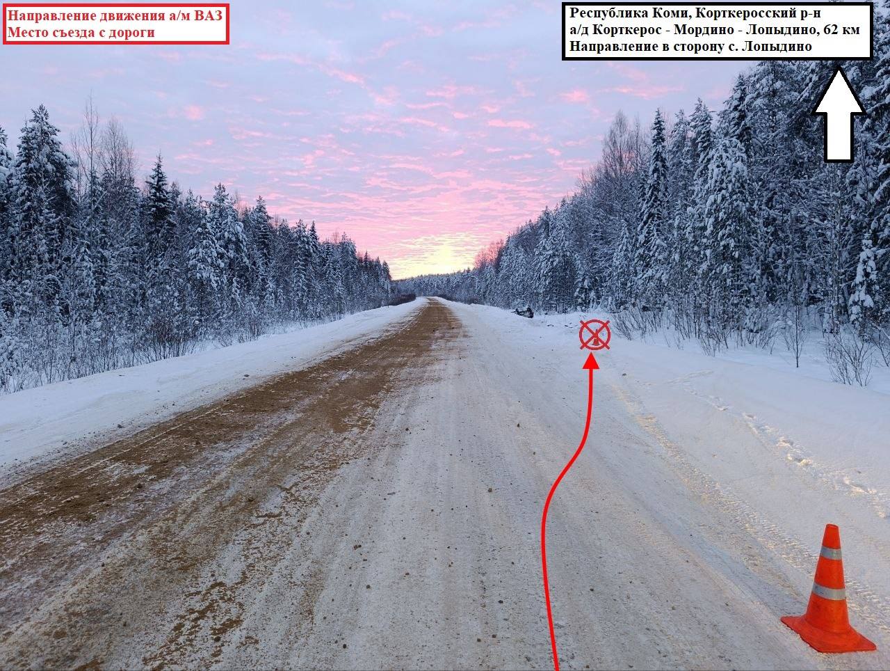 15.01.2026 около 05:20 водитель, управляя автомашиной «ВАЗ», двигаясь по автодороге «Корткерос-Мордино-Лопыдино», не справился с рулевым управлением, в результате чего совершил съезд с дороги в правый по ходу движения кювет