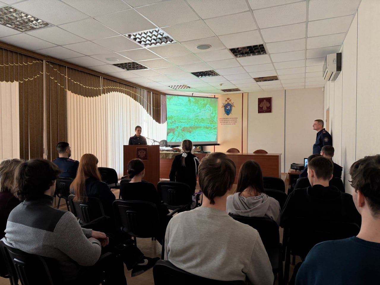 В преддверии Дня полного освобождения Ленинграда от фашистской блокады в следственном управлении Следственного комитета Российской Федерации по Республике Коми состоялось учебно-познавательное занятие с учащимися средней образовательной школы города Сыктывкара. В мероприятии принял участие участник специальной военной операции Герой России Станислав Кочев.