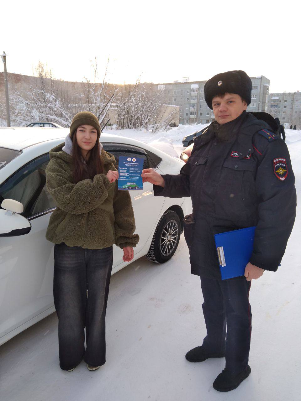 В конце встречи сотрудники полиции желают начинающим водителям успешной сдачи экзамена, самых безопасных дорог и вручают памятки по зимнему вождению.