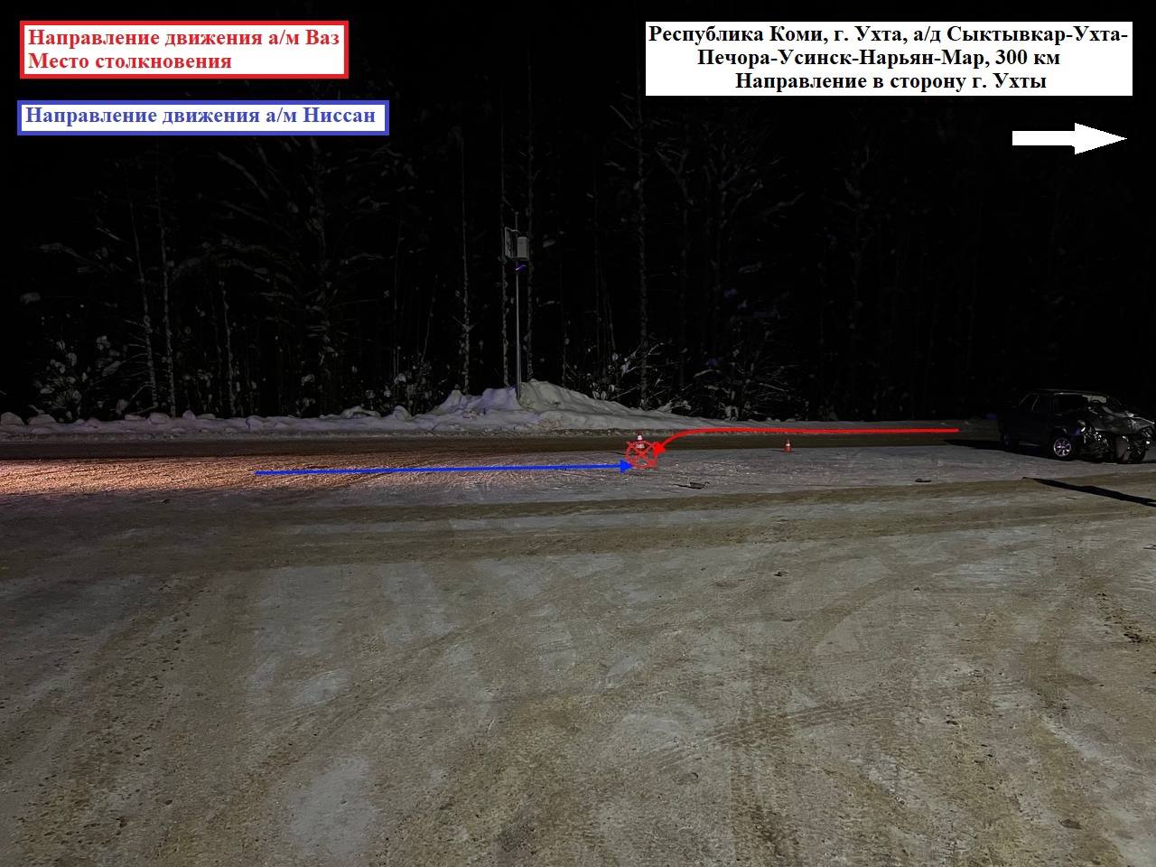 05.02.2026 около 20:35 водитель, управляя автомашиной «Лада», двигаясь по автодороге «Сыктывкар - Ухта - Печора - Усинск - Нарьян-Мар», на нерегулируемом перекрестке, выполняя маневр поворота налево, не уступил дорогу, в результате чего совершил столкновение с автомашиной «Ниссан».