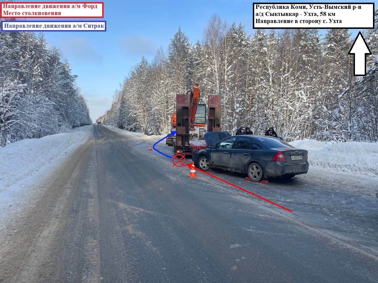 «Сыктывкар–Ухта – Печора – Усинск – Нарьян-Мар», не учел безопасную дистанцию до движущегося впереди в попутном направлении транспортного средства, в результате чего совершил столкновение с автомашиной«Ситрак».