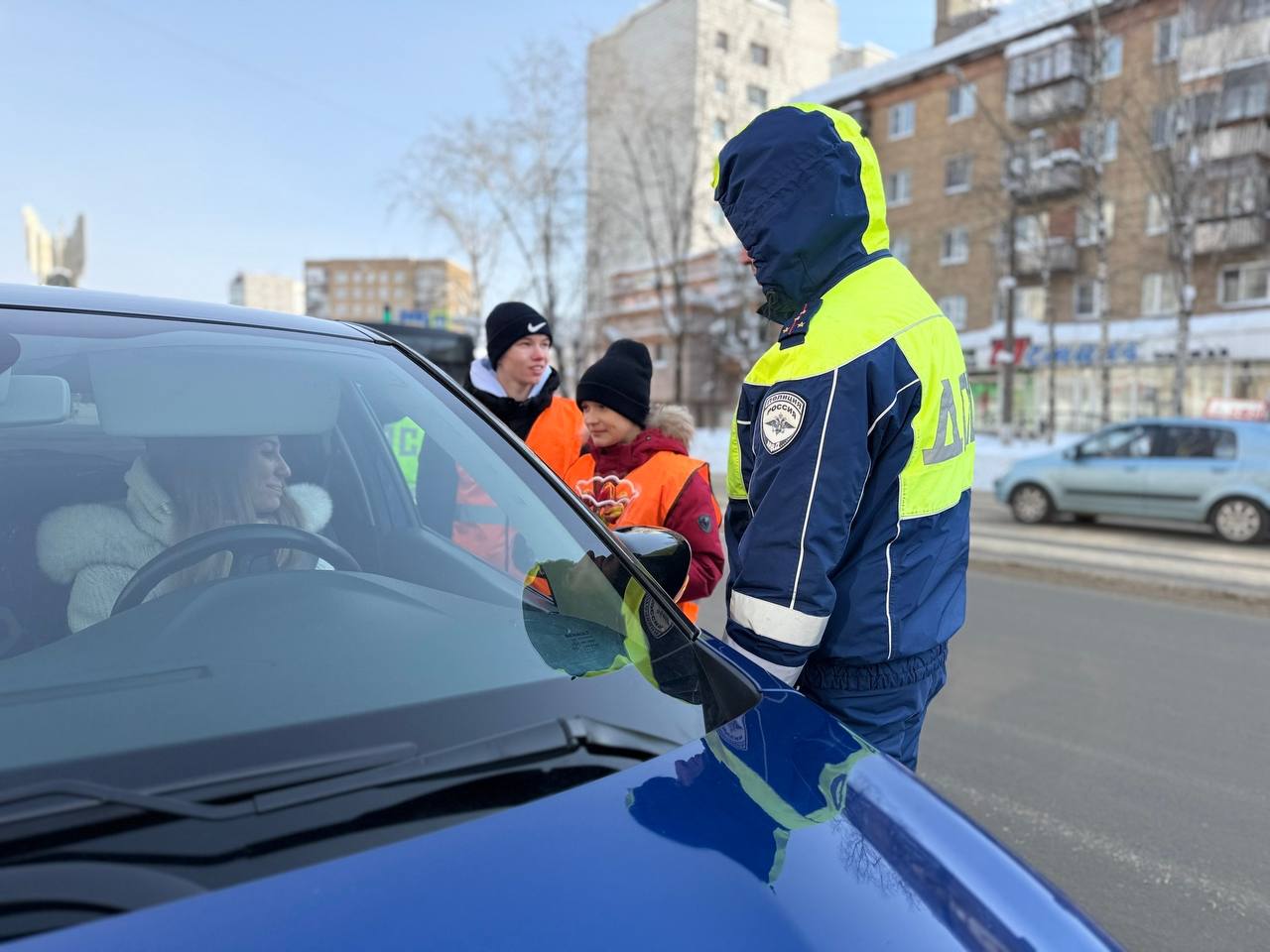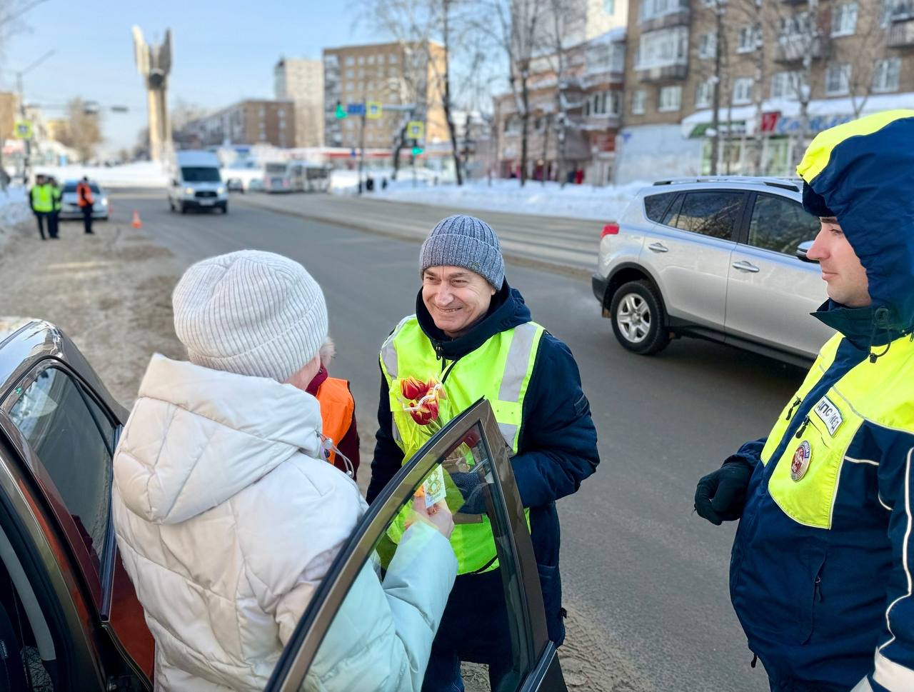 В Сыктывкаре полицейские и общественники поздравили автоледи с наступающим Международным женским днем