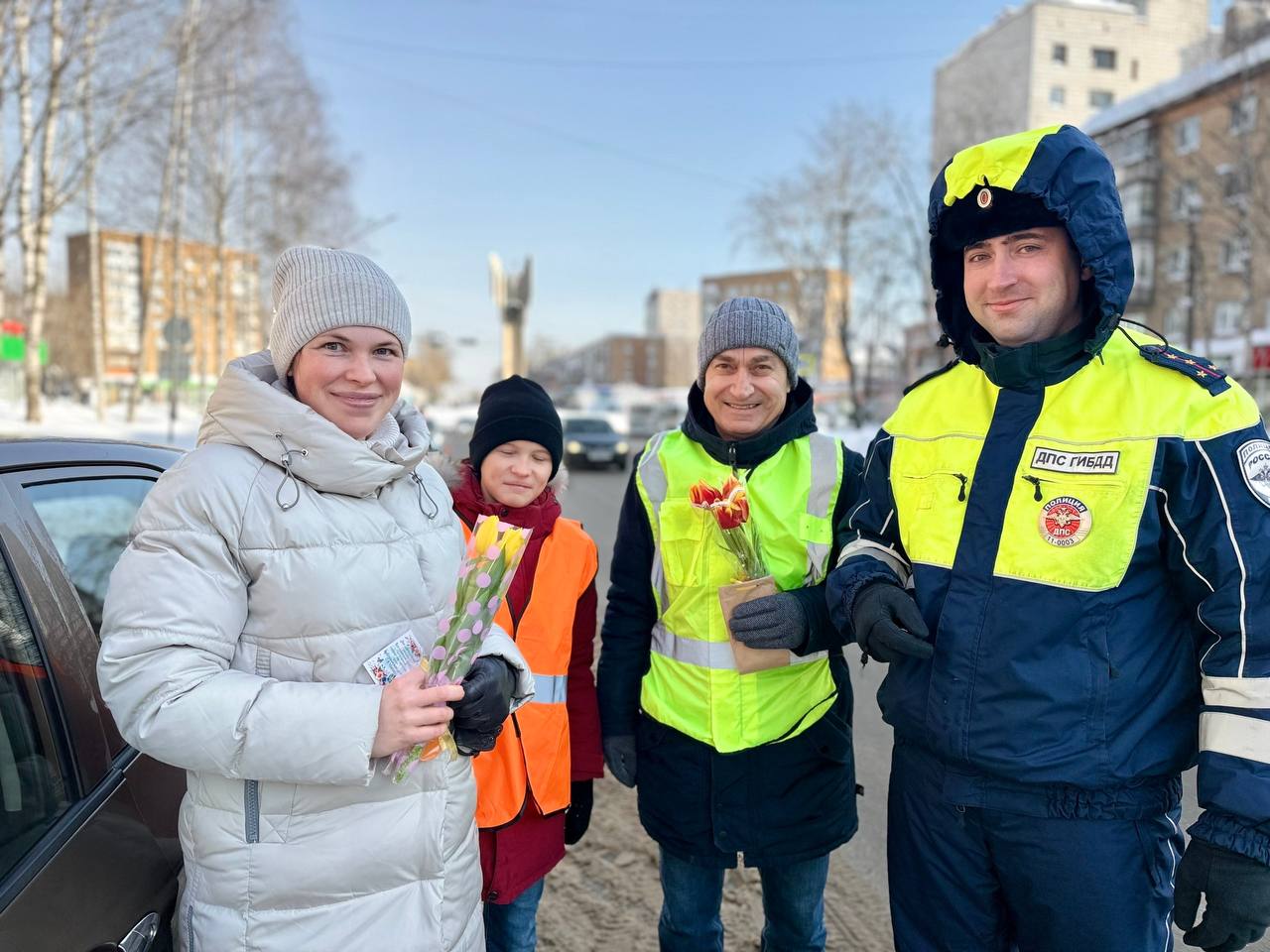В преддверии празднования 8 Марта сотрудники Управления Госавтоинспекции МВД по Республике Коми совместно с воспитанниками подшефного детского дома им. А.А. Католикова и членом Общественного совета при МВД Мнацаканом Никогосяном провели традиционную Всероссийскую акцию «Цветы для автоледи»