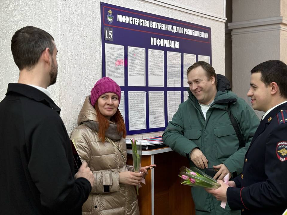 В преддверии Международного женского дня сотрудники УМВД России по городу Сыктывкару совместно с представителем Общественного совета при городском ведомстве провели праздничную акцию «8 марта в каждый дом».