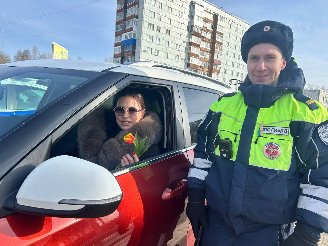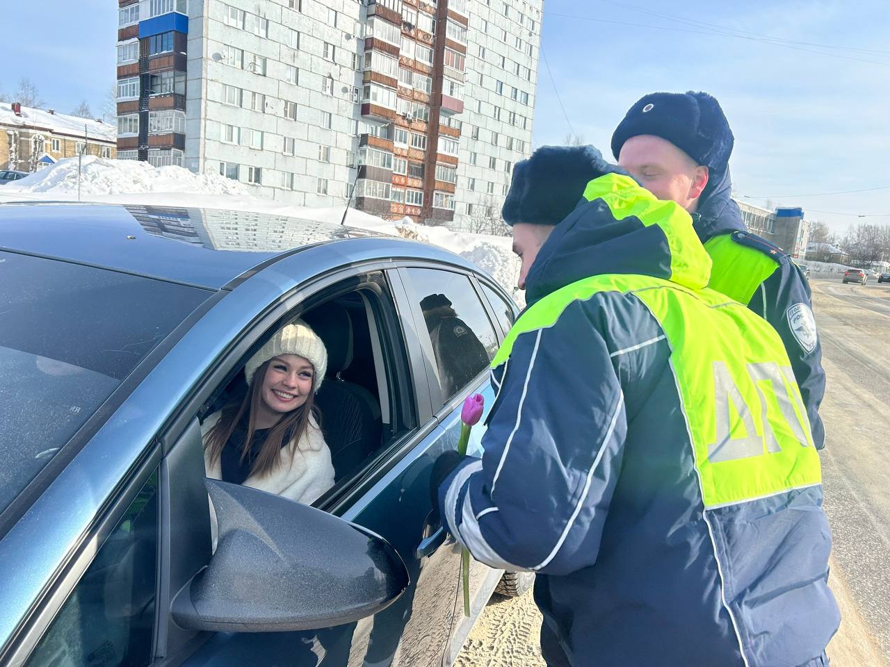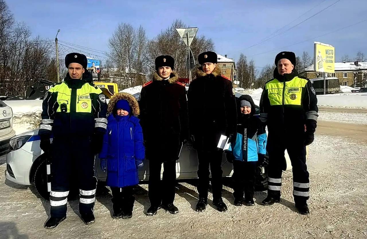 В преддверии 8 Марта сотрудники #Госавтоинспекции11 ОМВД России "Сосногорский " совместно с кадетамиполицейского 1а класса г. Сосногорска и отрядом ЮИД МБОУ «Кадетская школа» г. Сосногорска присоединились к Всероссийской акции «Цветы для автоледи»