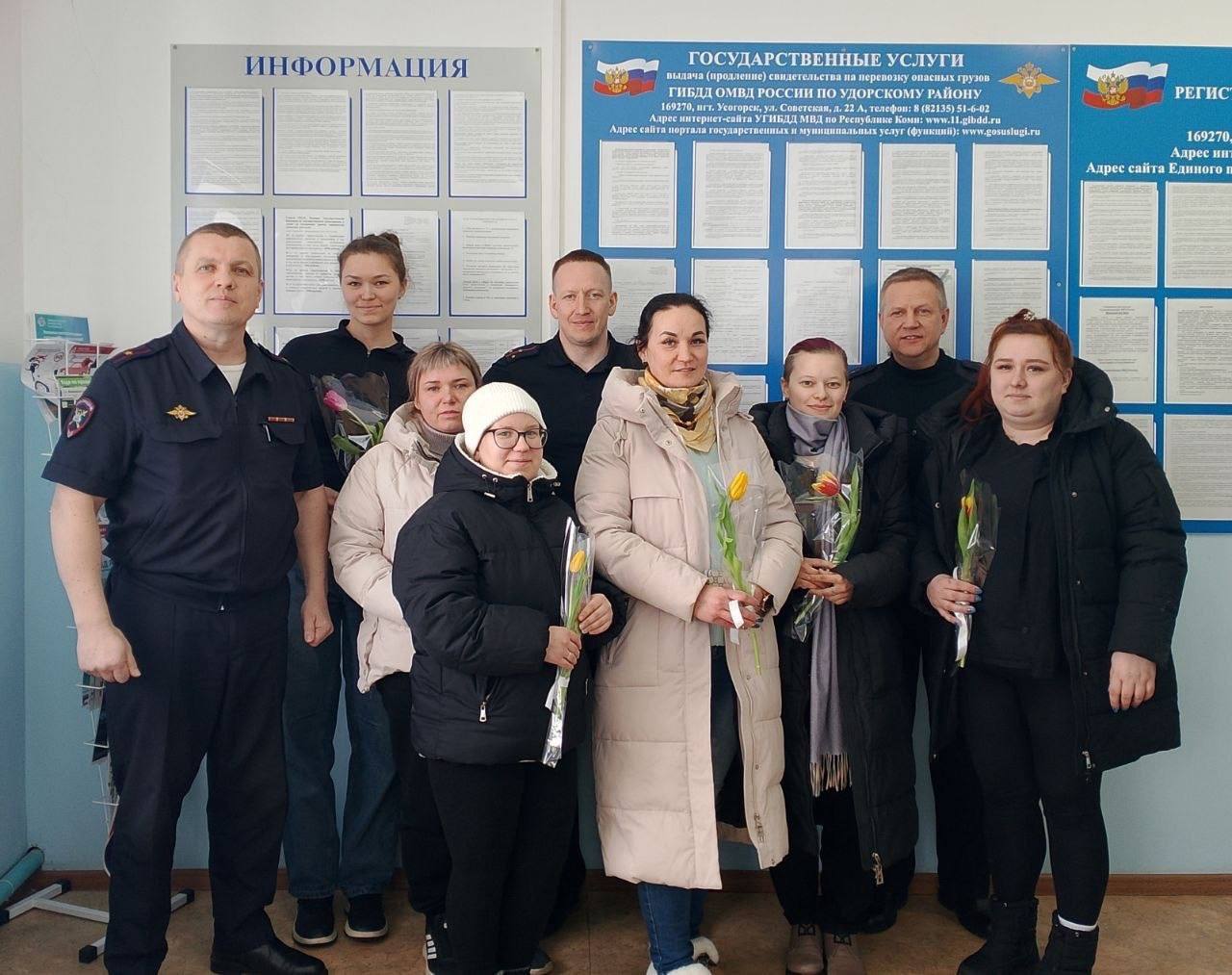 Сотрудники #Госавтоинспекции11 ОМВД России по Удорскому району поздравили женщин-водителей, а также будущих автоледи с Международным женским днём!