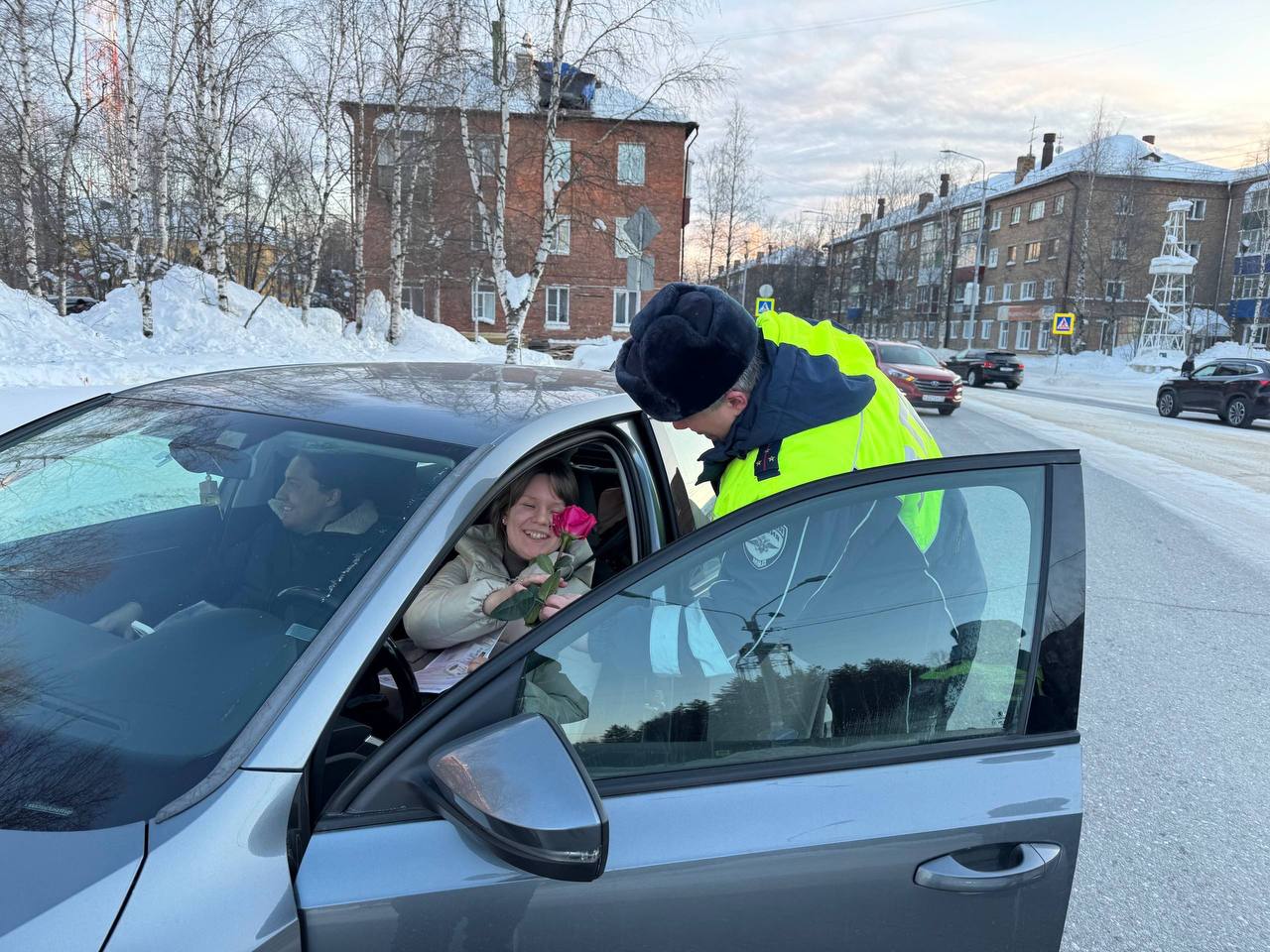 В Печорах сотрудники #Госавтоинспекции11 поздравили автоледи с 8 Марта