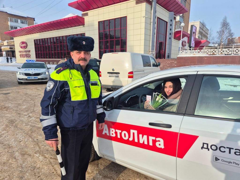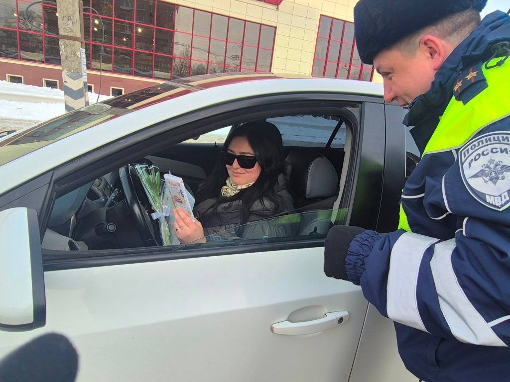 Сотрудники #Госавтоинспекции11 г. Ухты поздравили автоледи с Международным женским днем