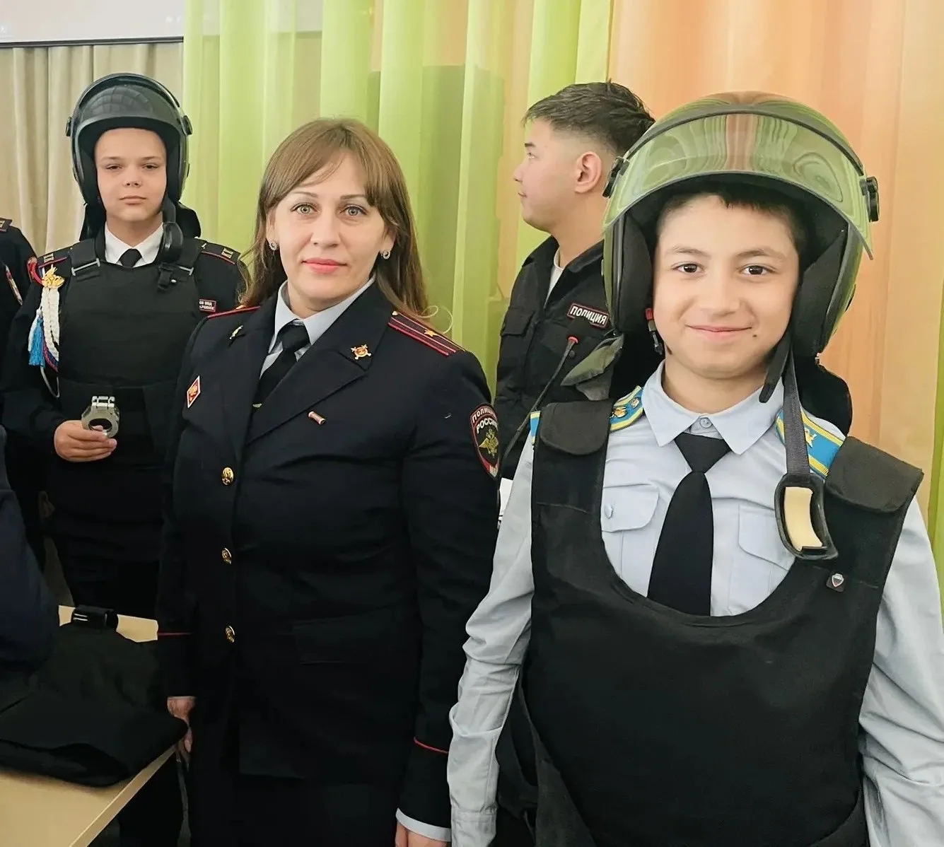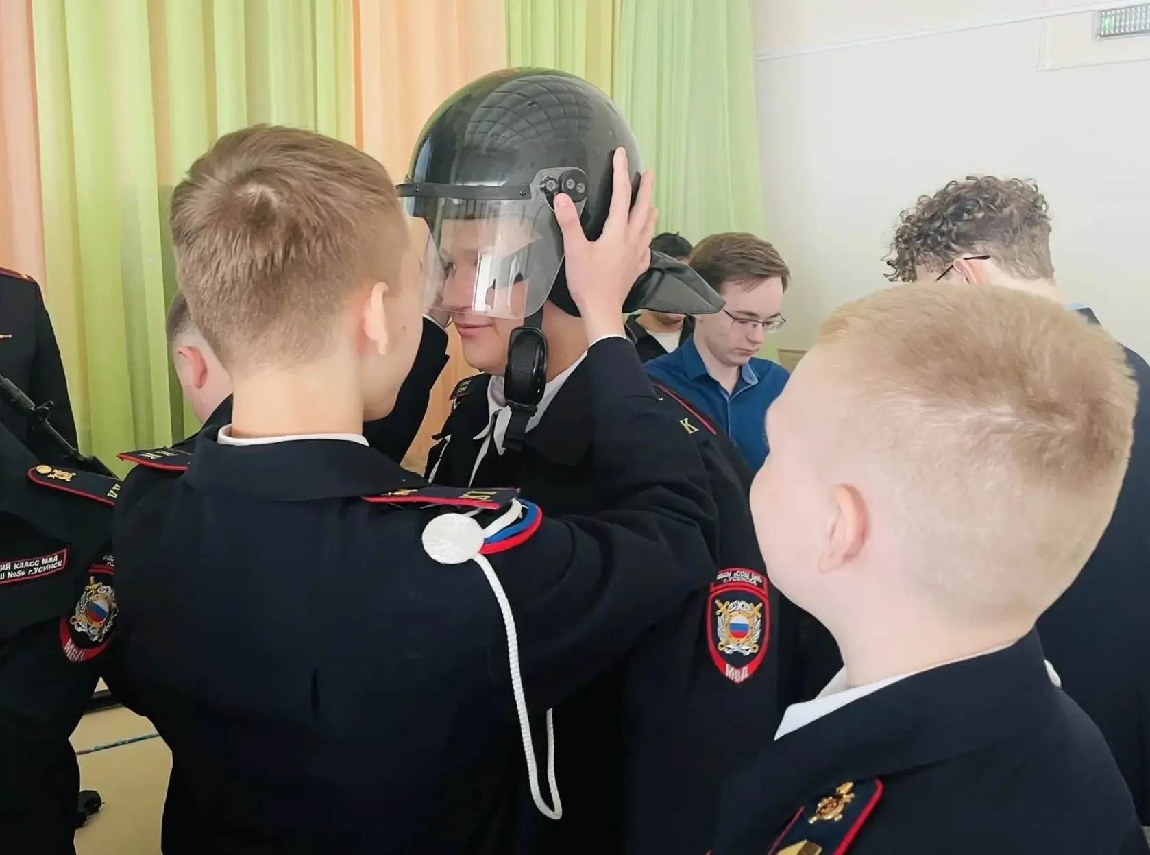 Заместитель начальника полиции по охране общественного порядка рассказал кадетам о своей работе. Особый интерес у ребят вызвала демонстрация спецсредств и обмундирования. Кадеты смогли примерить бронежилеты и каски, чтобы на себе почувствовать, в каких условиях иногда приходится работать сотрудникам полиции.