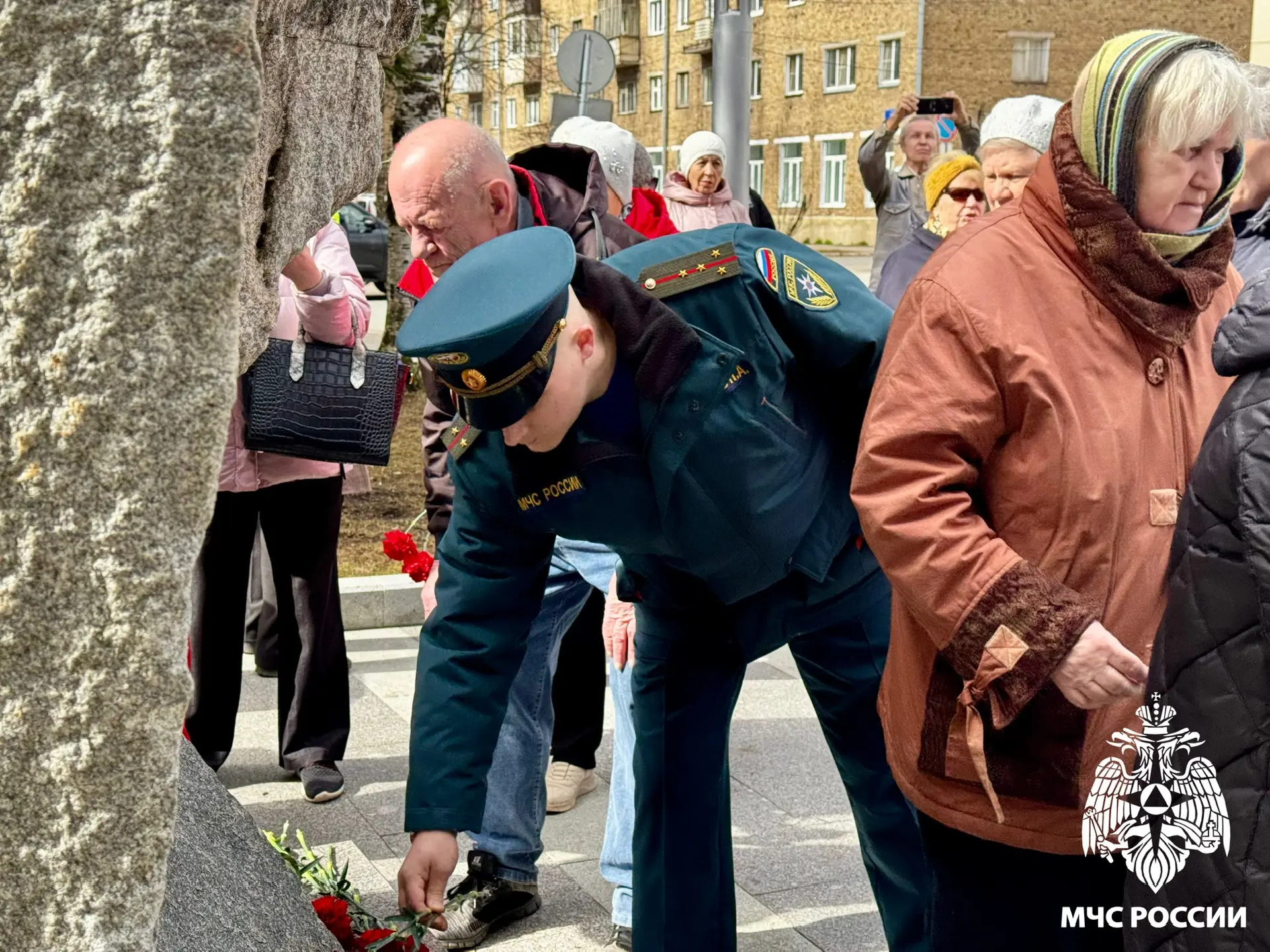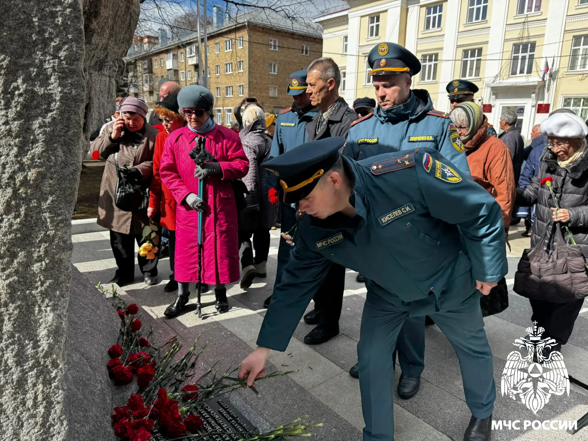 Отдать дань мужеству ликвидаторов Чернобыльской аварии пришли сотрудники и ветераны чрезвычайного ведомства во главе с исполняющим обязанности заместителя начальника Главного управления (по политической и воспитательной работе) Сергеем Киселевым.