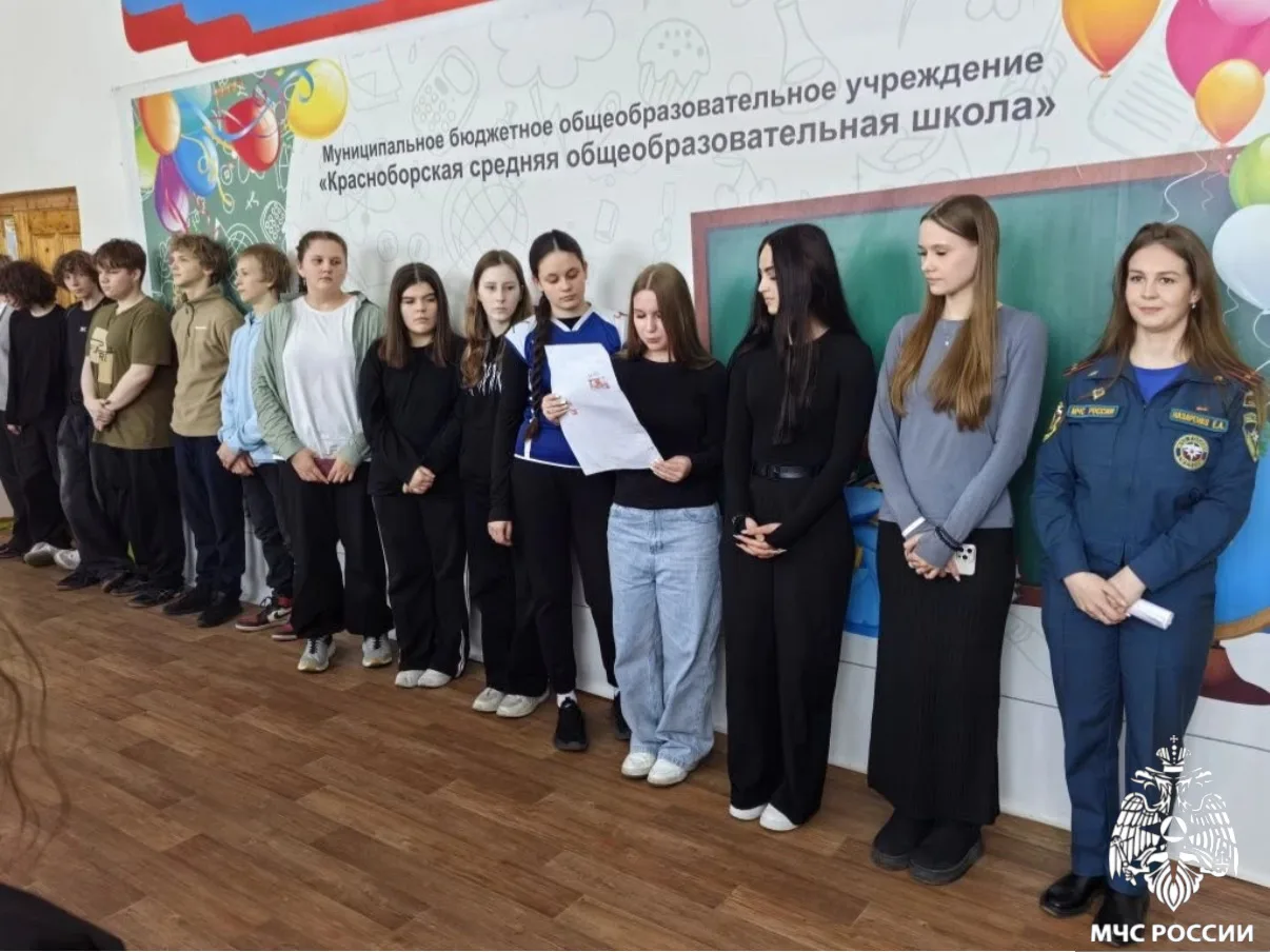 Инспектор МЧС России Екатерина Назаренко провела в Красноборской школе уроки безопасности для 1-х и 9-х классов.