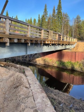 Это мост через реку Северная Цебьюга в Удорском районе.Подрядчик уже завершает реконструкцию моста. Сейчас рабочие укрепляют подъездные пути и готовят поверхность для укладки специального покрытия из щебня и песка.Завершить все...