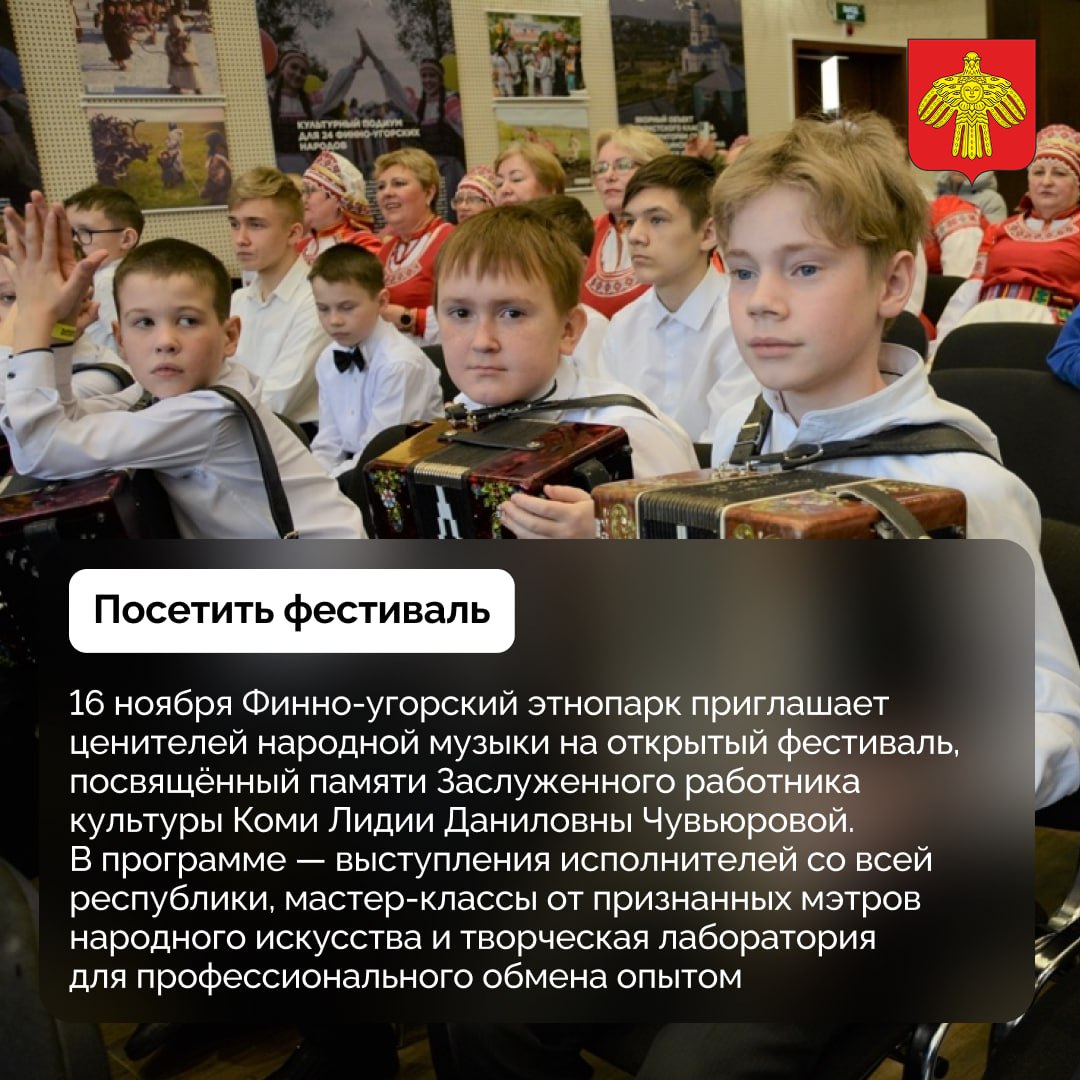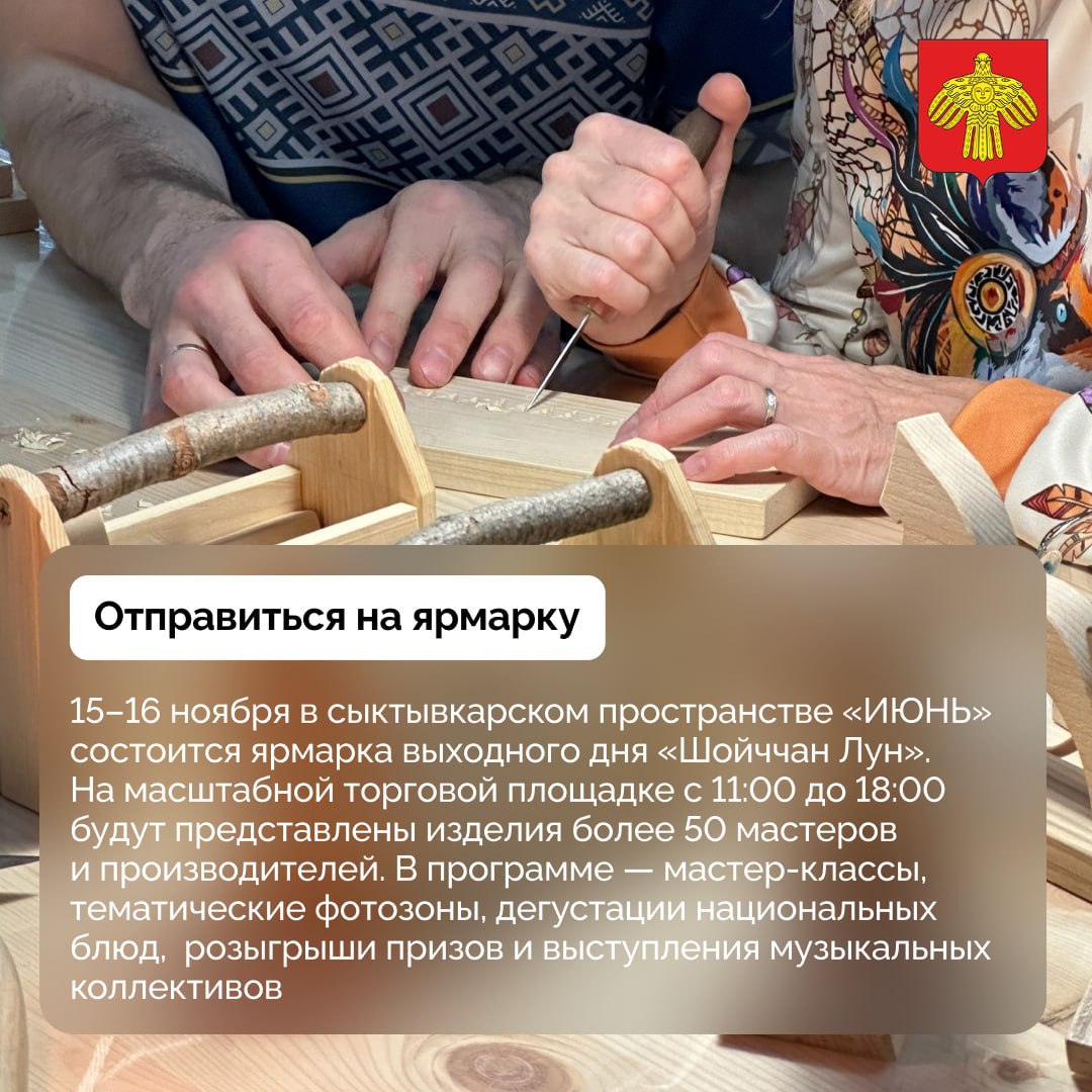 В подборке — масштабная ярмарка изделий ручной работы, балет «Щелкунчик», фестиваль, посвящённый памяти Заслуженного работника культуры Коми Лидии Даниловны Чувьюровой, и другое.