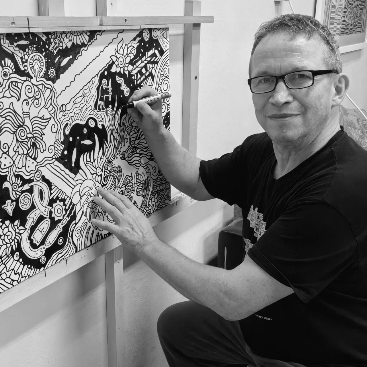 В своем творчестве художник-этнофутурист обращается к мифологии коми народа.