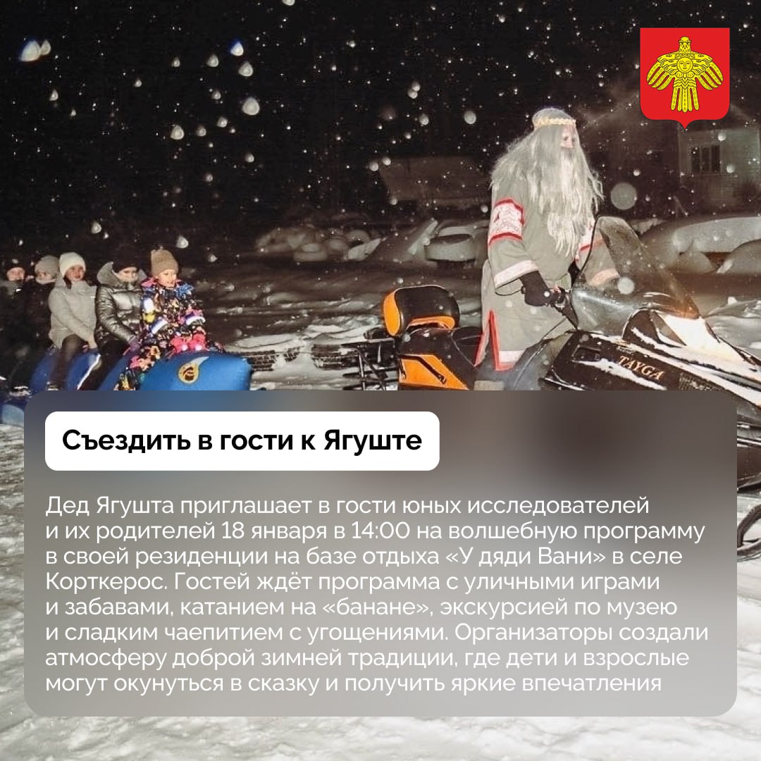В подборке — фестиваль зимнего спорта и развлечений «Первый Зимний», уютная святочная программа, активный семейный отдых вдали от городской суеты и другое.