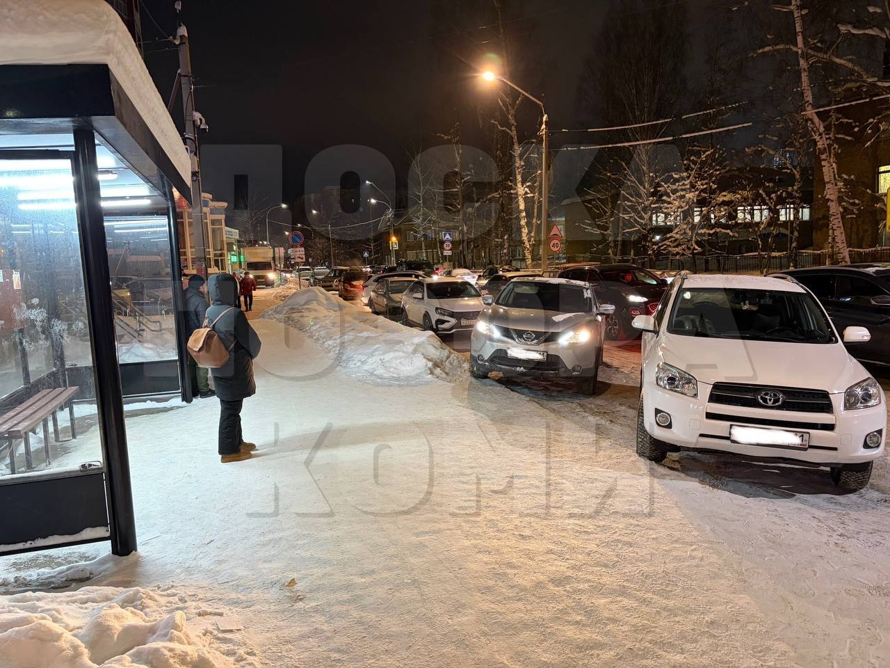 В Сыктывкаре водители припарковали свои автомобили на автобусной остановке