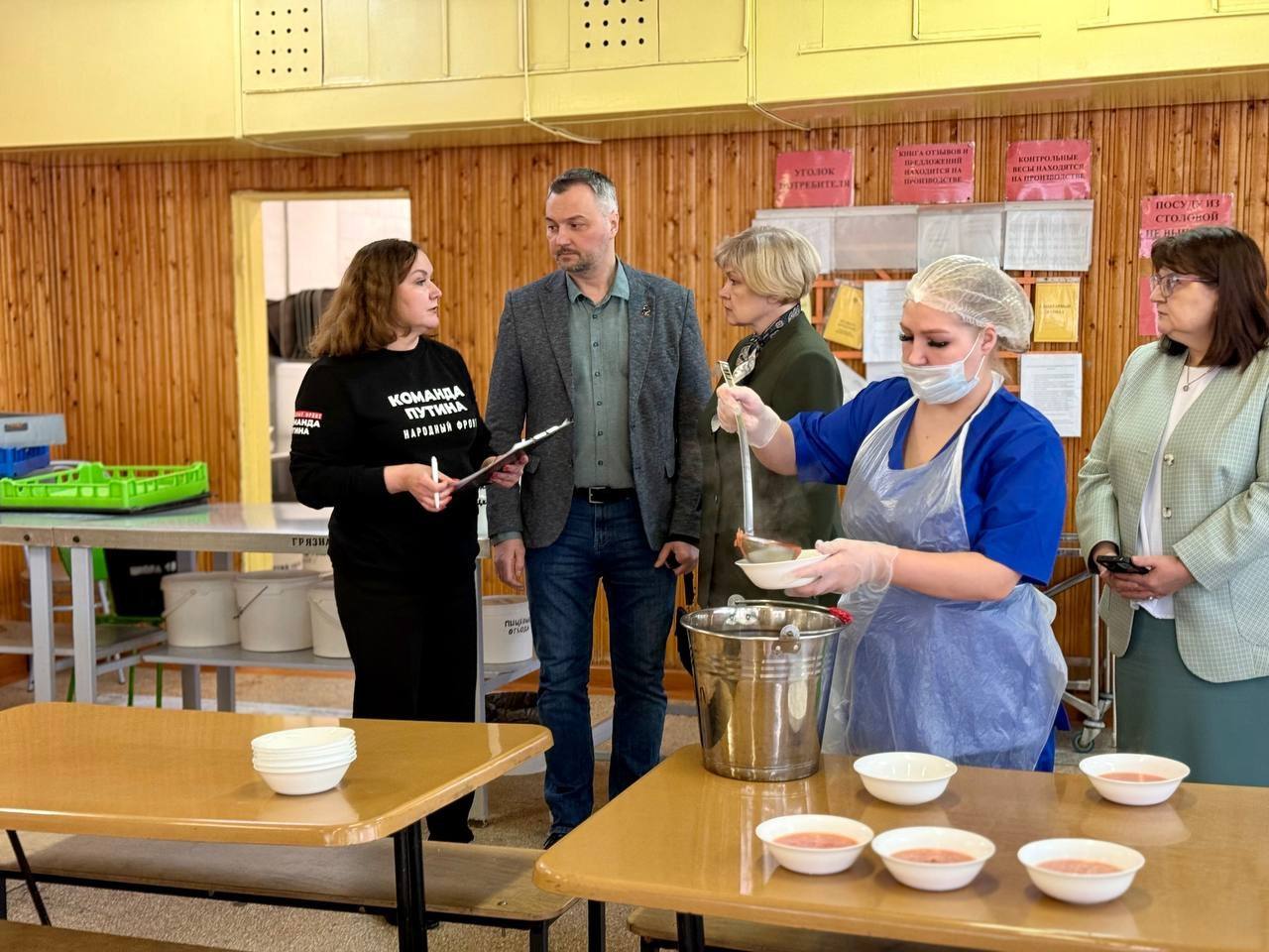 В составе комиссии работали члены Общественной палаты города Александр Смирнов и Семён Кулешов, депутат городского Совета Оксана Беляева, а также представитель Общественной палаты Республики Коми Елена Иванова. Все они - активные участники партийного проекта «Новая школа» и народной программы «Единой России». Смотрели на всё глазами родителей: чистота в столовой, соблюдение норм, работа бракеражной комиссии, свежесть продуктов и, конечно, настроение детей за обедом.