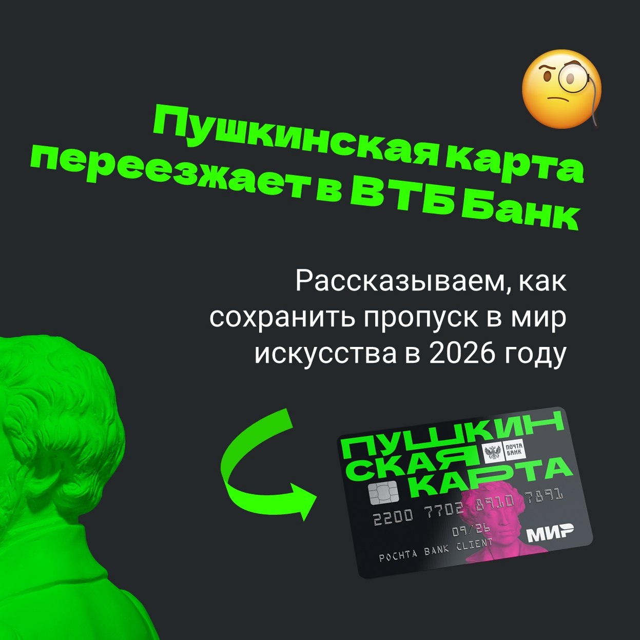 В следующем году оператором программы станет ВТБ Банк. Это означает, что Пушкинская карта, выпущенная АО «Почта Банк», будет заблокирована с 1 января 2026 года. При этом: