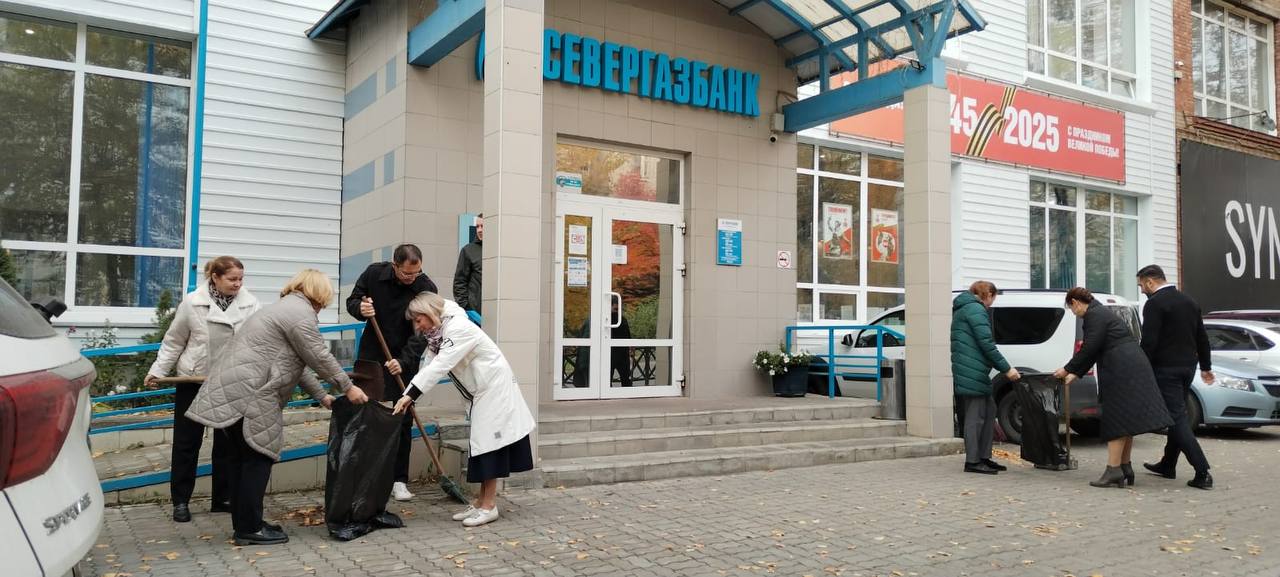 Сотрудники "Севергазбанк" присоединились к городской акции по уборке и привели в порядок прилегающую к организации территорию