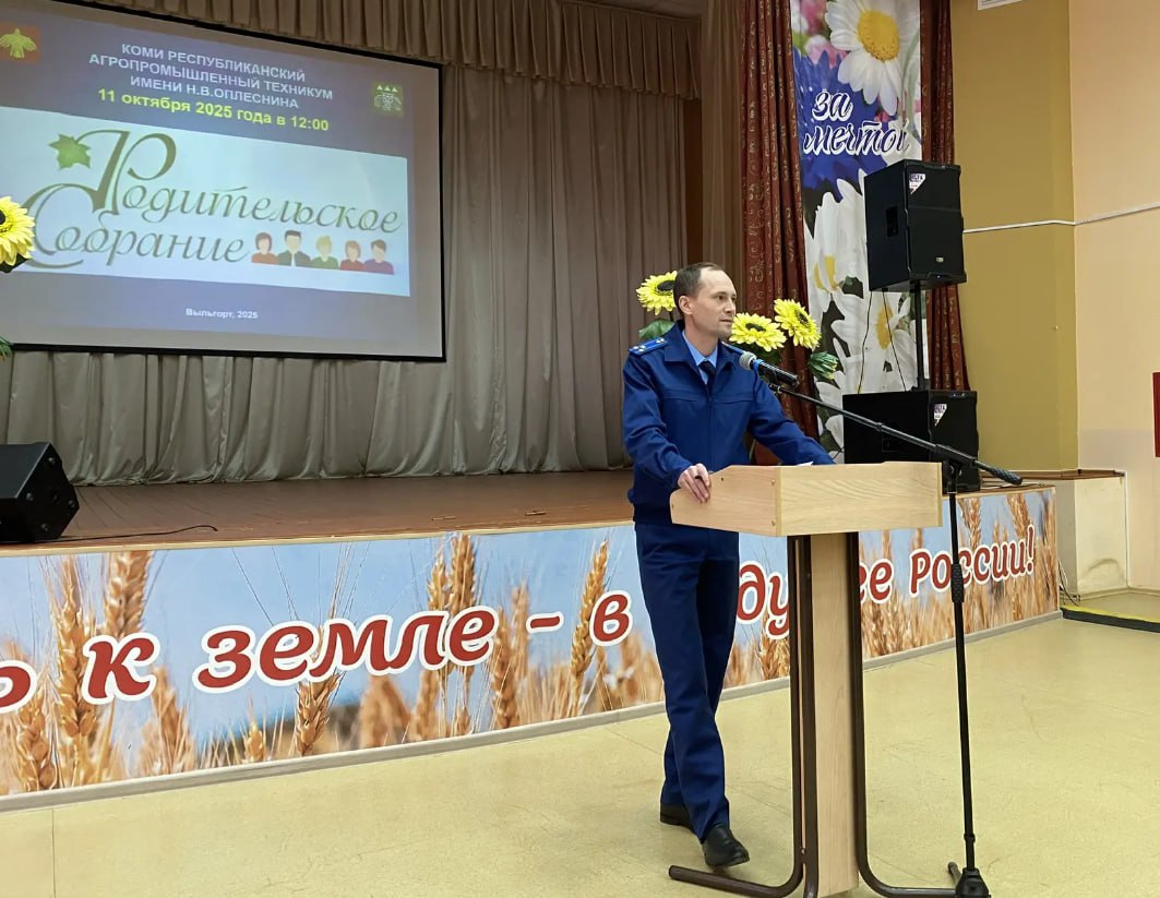К примеру, заместитель прокурора Сыктывдинского района Алексей Богаревский принял участие в родительском собрании в Коми республиканском агропромышленном техникуме им. Н.В.Оплеснина, нисколько не рискуя попасть в зону критики.